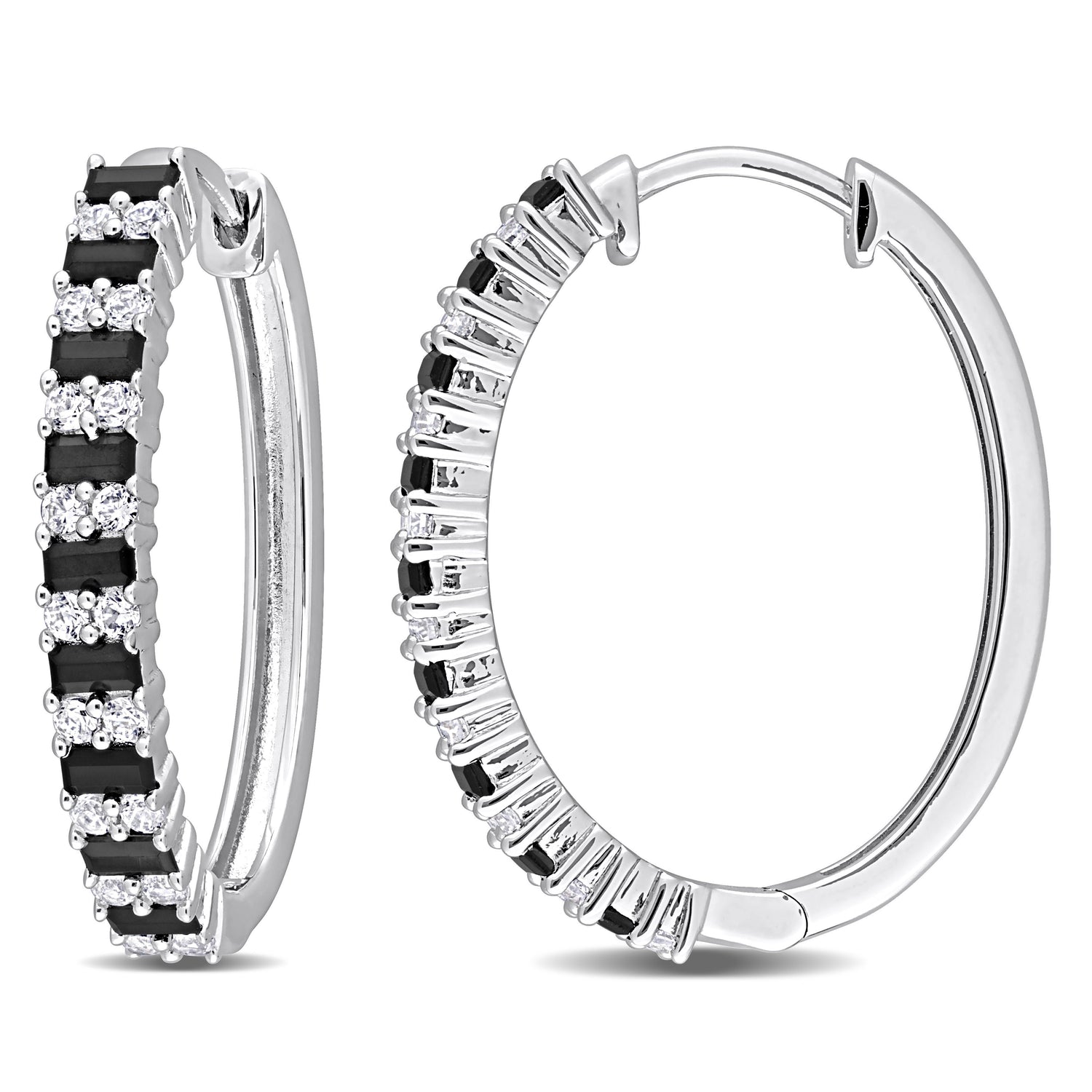 Mimi & Max 2 1/2 CT TGW Black Spinel and Created White Sapphire Hoop Earrings in Sterling Silver