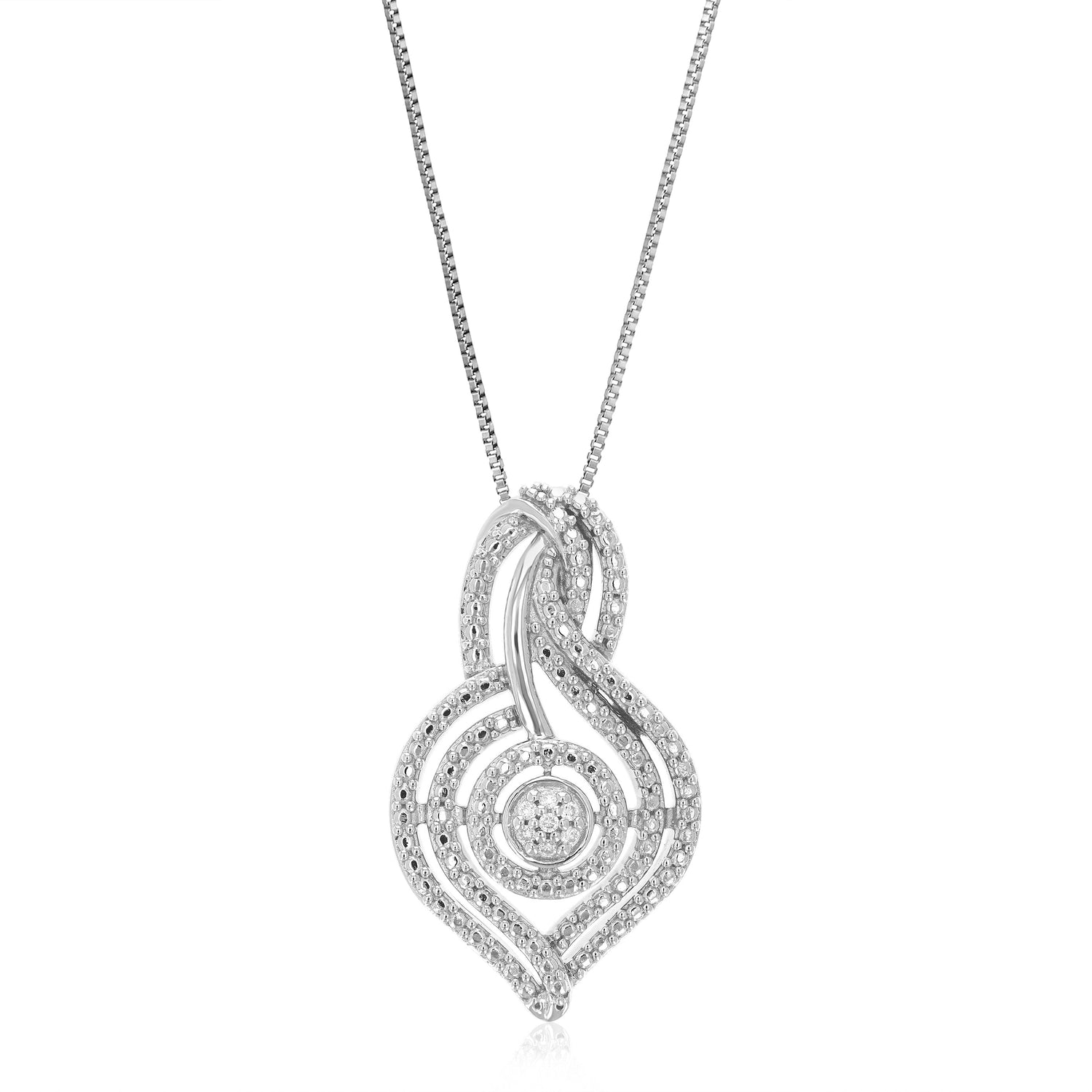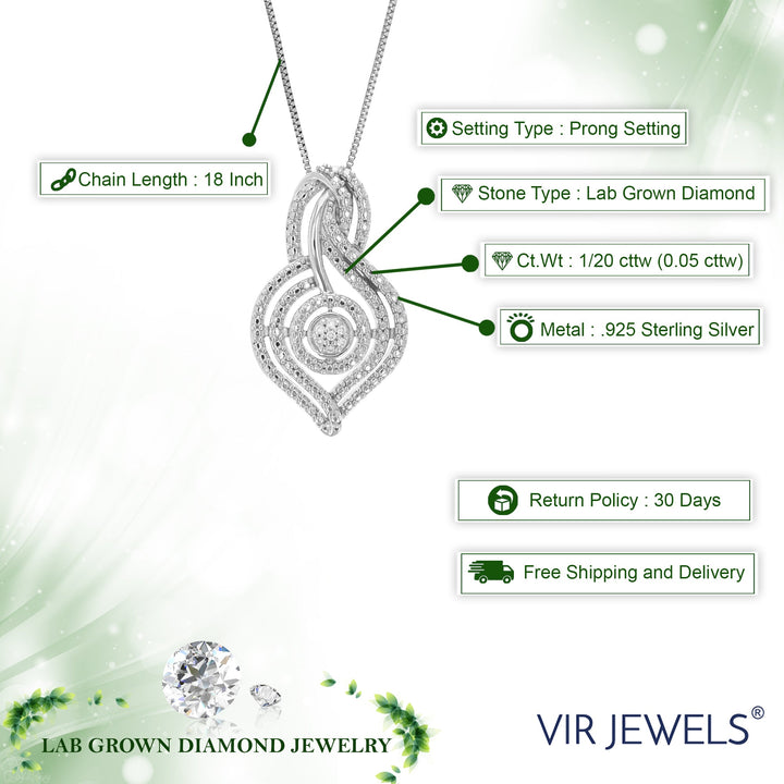 Made from .925 sterling silver with 7 round-cut lab-grown diamonds, totaling 1/20 cttw. Diamond color H-I, clarity SI1-SI2. Prong setting. Pendant width: 17mm (2/3 inch); length: 30mm (1 1/4 inch).
