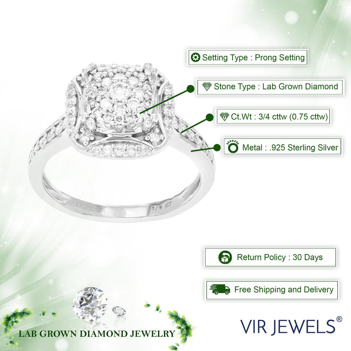 This 3/4 cttw Lab Grown Diamond Engagement Ring by Vir Jewels is designed to captivate. With 85 meticulously set diamonds, this ring delivers an extraordinary sparkle. Crafted in sterling silver, the refined prong setting enhances the brilliance of each stone, making this engagement ring a striking symbol of love and sophistication.