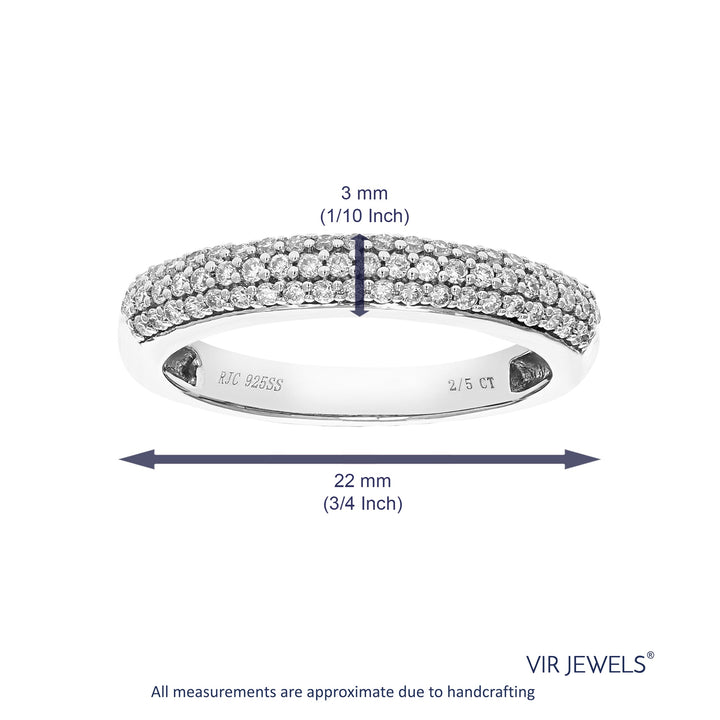 2/5 cttw 61 Stones Round Cut Lab Grown Diamond Wedding Band .925 Sterling Silver Prong Set