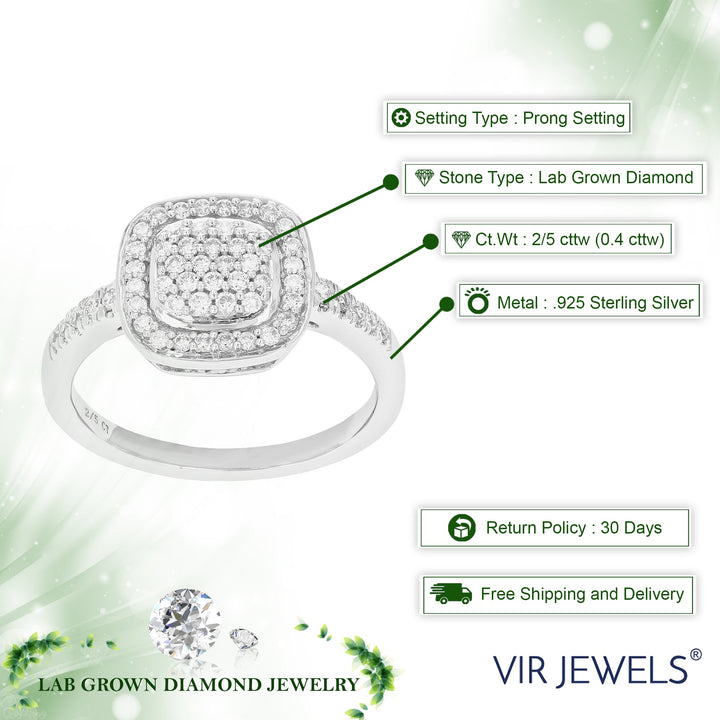 2/5 cttw 56 Stones Round Cut Lab Grown Diamond Engagement Ring .925 Sterling Silver Prong Set