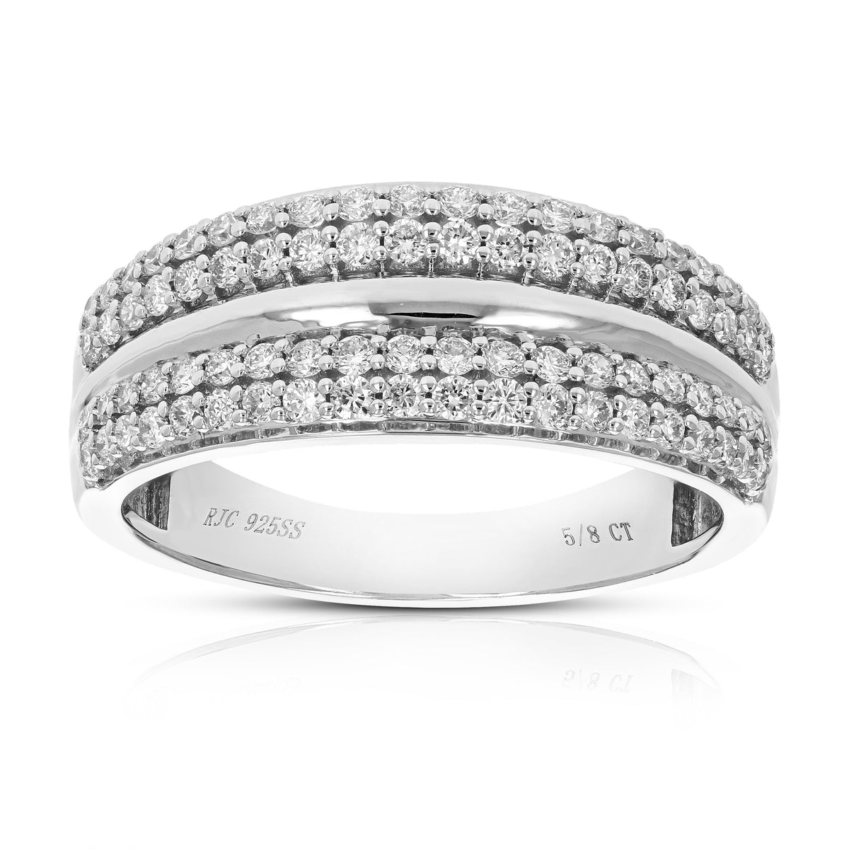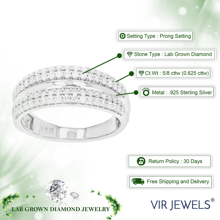 5/8 cttw 80 Stones Round Cut Lab Grown Diamond Wedding Band .925 Sterling Silver Prong Set