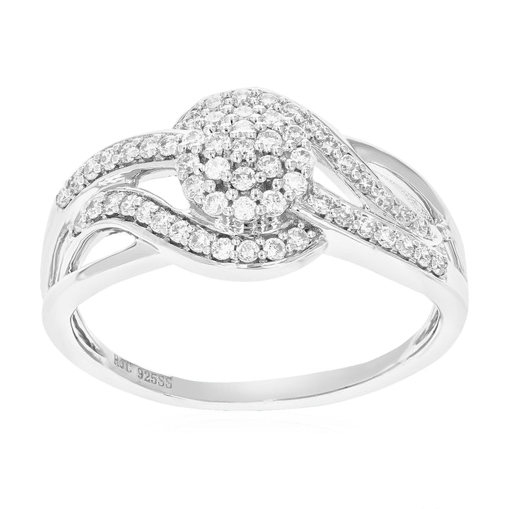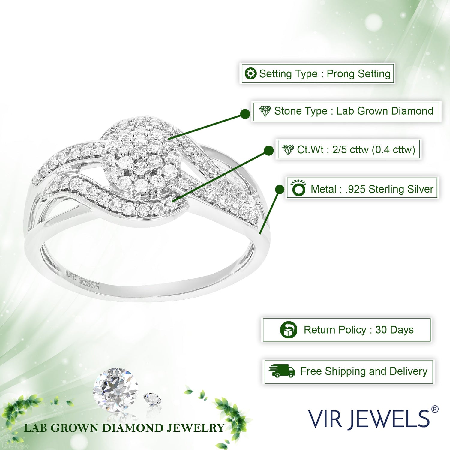 2/5 cttw 57 Stones Round Cut Lab Grown Diamond Engagement Ring .925 Sterling Silver Prong Set