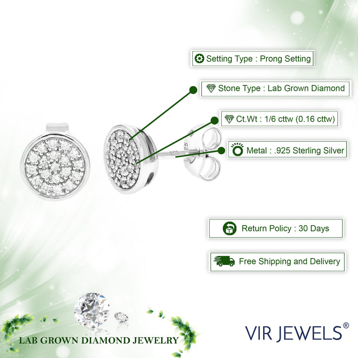Set in .925 sterling silver with 38 round lab-grown diamonds totaling 1/6 cttw. Diamonds are H-I color, SI1-SI2 clarity. Prong setting for secure placement. Earring dimensions: 8mm (1/3 inch) in width and height.