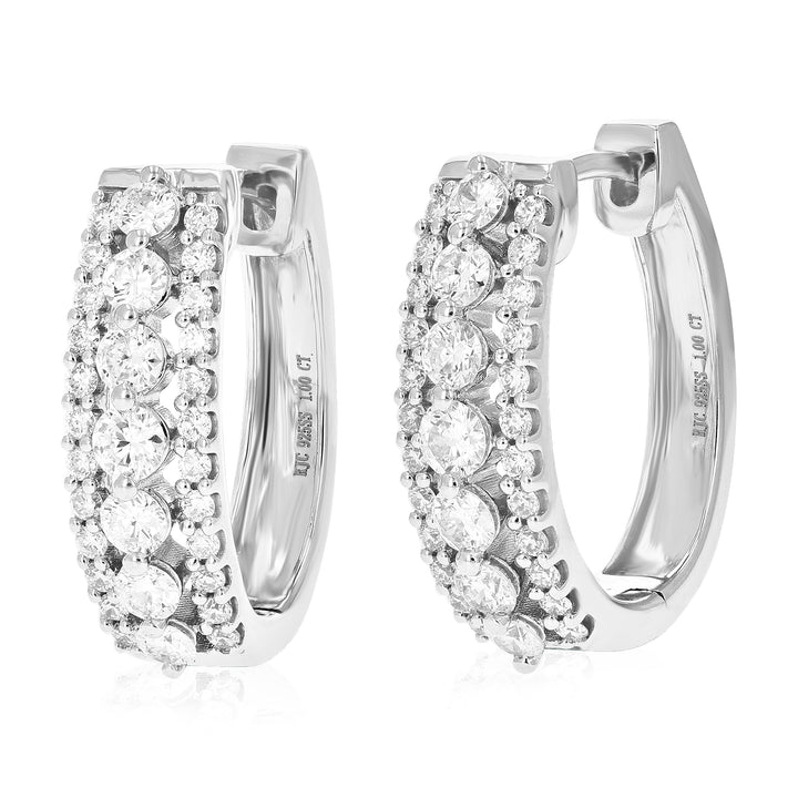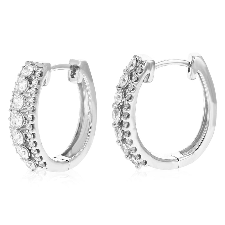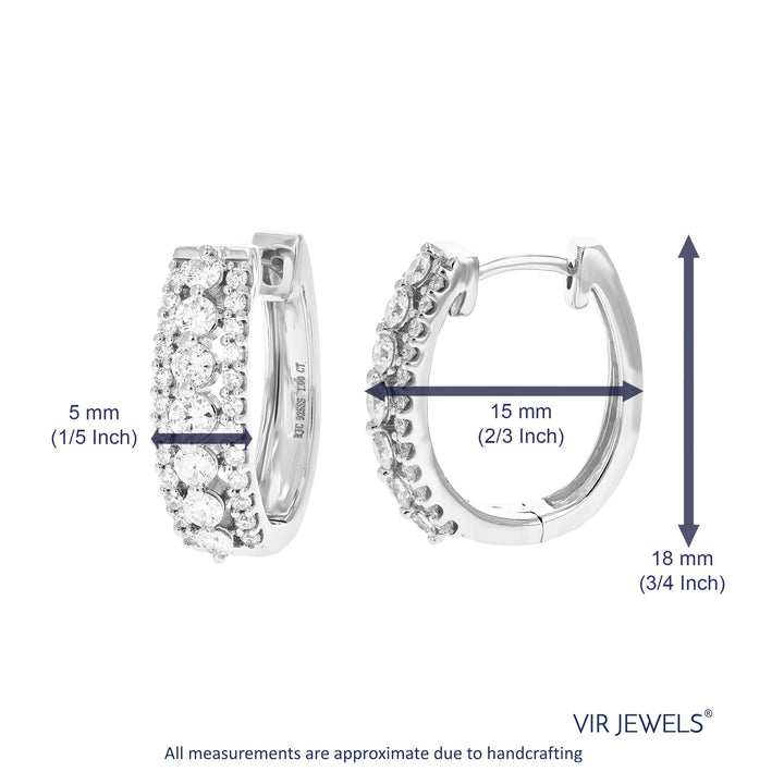1 cttw 62 Stones Round Lab Grown Diamond Hoop Earrings .925 Sterling Silver Prong Set 3/4 Inch
