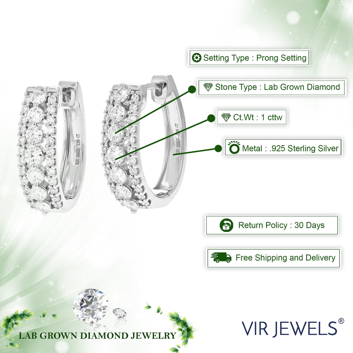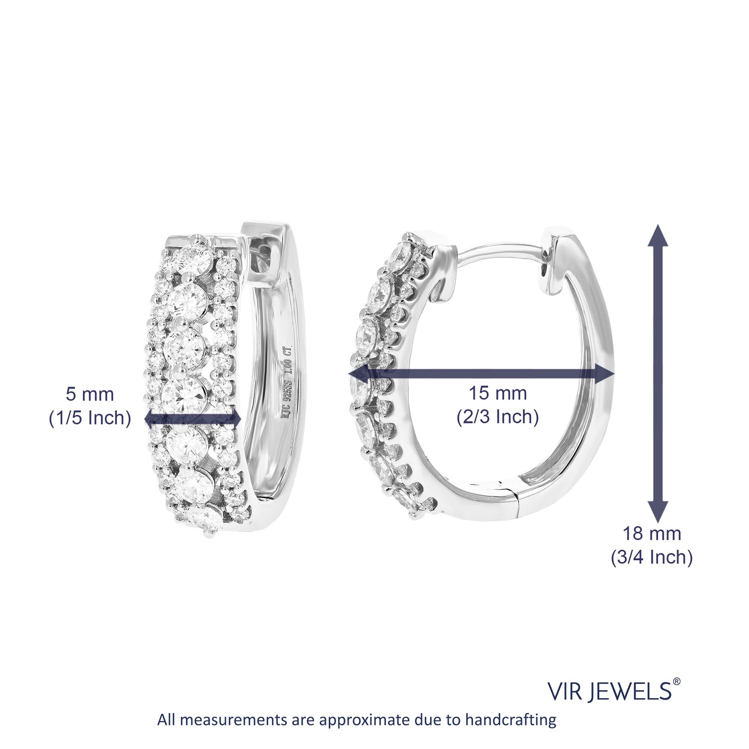 Handcrafted in .925 sterling silver with 18 round lab-grown diamonds (1/5 cttw). Diamond clarity: SI1-SI2, color: H-I. Prong setting. Stud earrings width: 5 MM (1/5 Inch); Height: 5 MM (1/5 Inch).