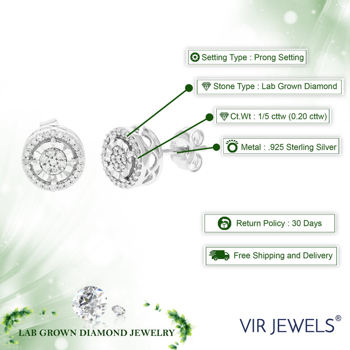 1/5 cttw 62 Stones Round Lab Grown Diamond Studs Earrings .925 Sterling Silver Prong Set 1/3 Inch