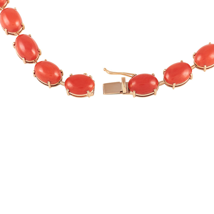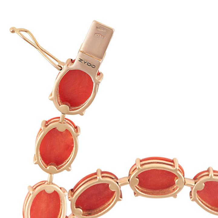 This 18K Rose Gold Diamond, Coral, and Tourmaline Necklace by Zydo is a breathtaking fusion of color and luxury. Designed as a continuous strand, this long necklace features oval-shaped coral cabochons set in four-prong settings, interspersed with captivating cabochon-cut tourmalines and faceted diamonds. The warm hues of coral and tourmaline create an enchanting contrast, making this piece a distinctive and timeless statement of elegance.