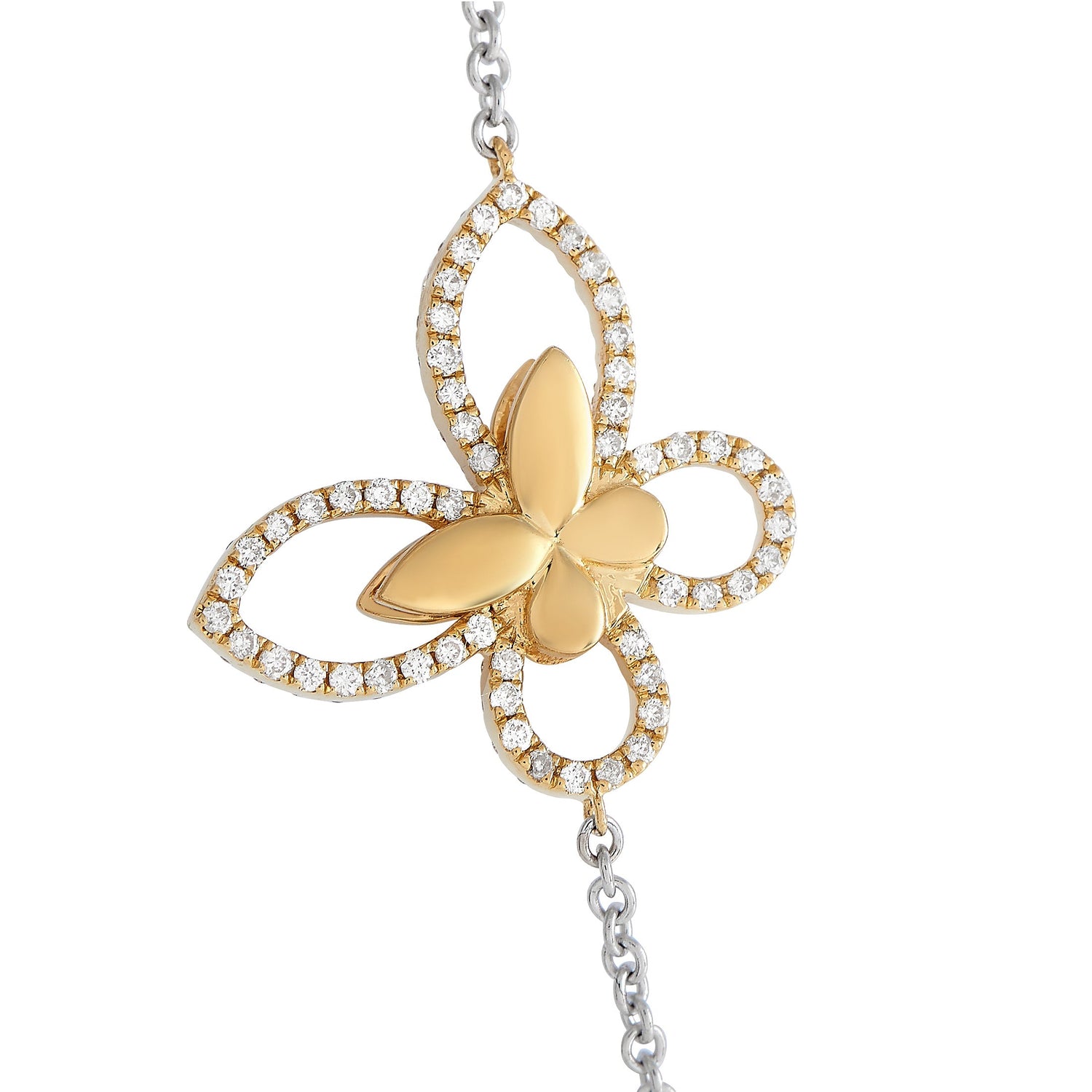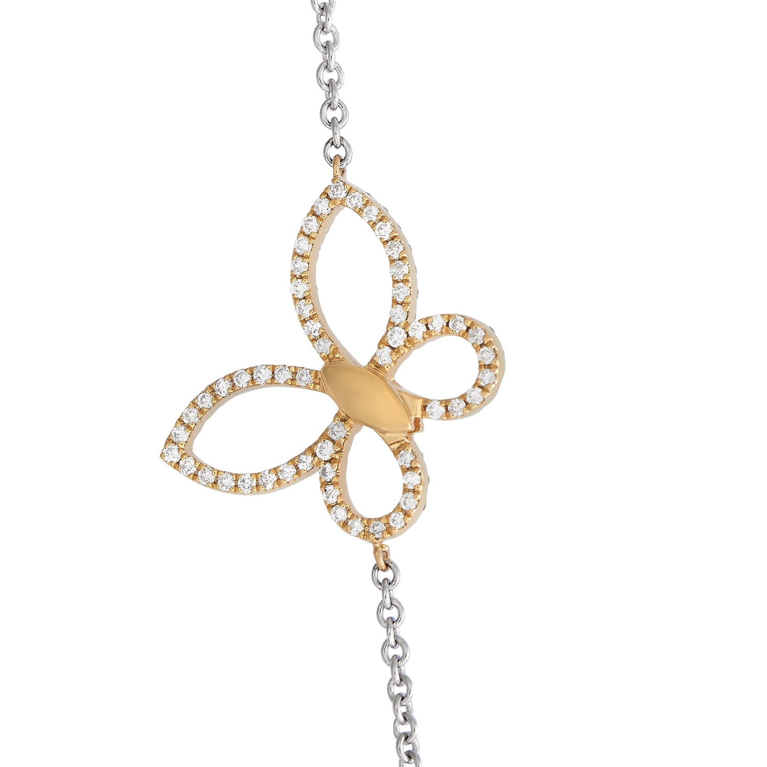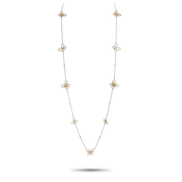 Crafted in 18k white gold with 18k yellow gold butterfly motifs and 5.0 total carats of diamonds. Length: 36 inches.