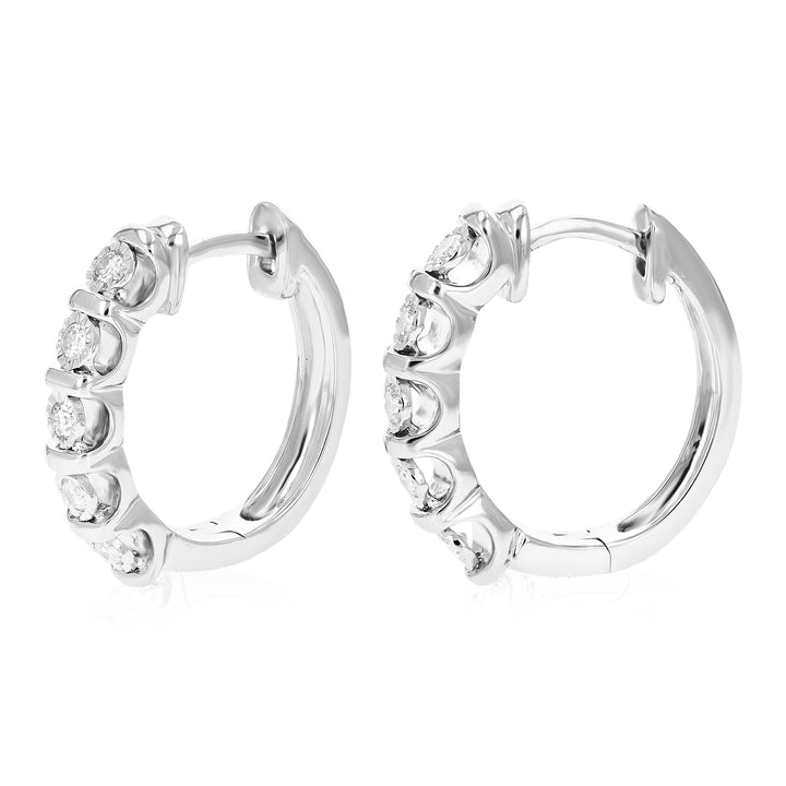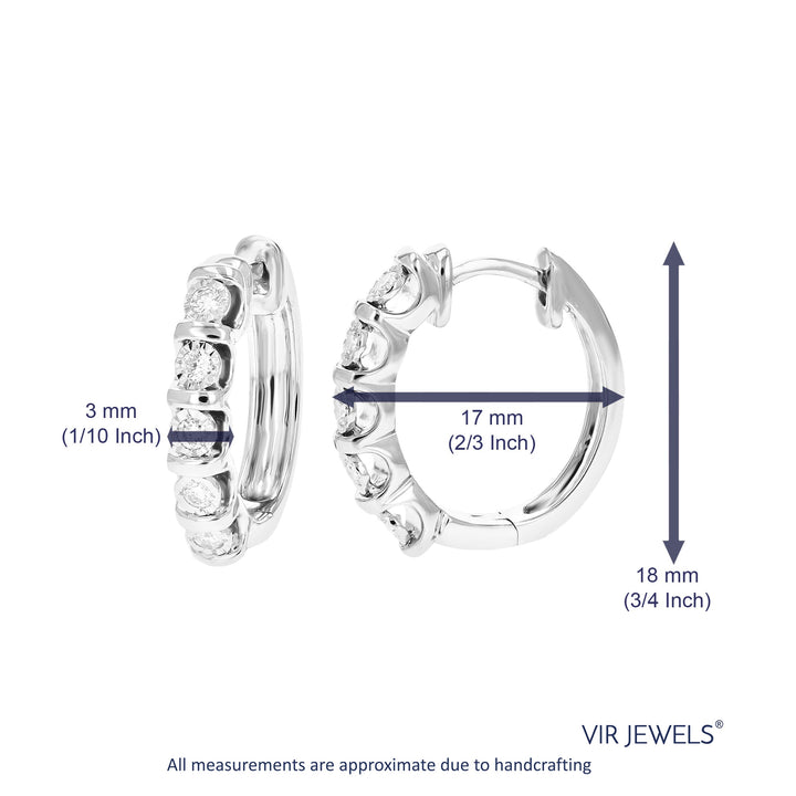 These 1/4 cttw Round Lab Grown Diamond Hoop Earrings by Vir Jewels feature 10 sparkling diamonds set in a bezel setting. The bezel setting provides a modern and secure way to showcase the diamonds, while the .925 sterling silver ensures durability and shine. These hoop earrings are perfect for adding an elegant touch to any outfit.