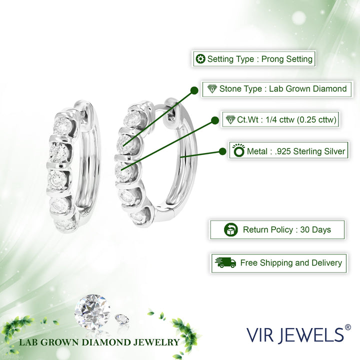 1/4 cttw Round Lab Grown Diamond Hoop Earrings .925 Sterling Silver Prong Set 3/4 Inch