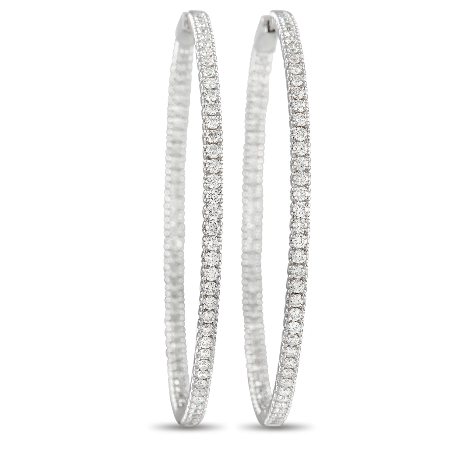 LB Exclusive 14K White Gold 3.74ct Diamond Inside-Out Hoop Earrings
