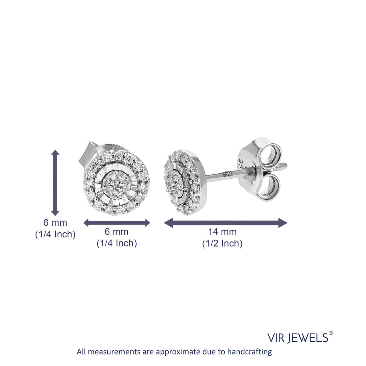 Set in .925 sterling silver with 44 round lab-grown diamonds totaling 1/5 cttw. Diamonds are H-I color, SI1-SI2 clarity. Prong setting for secure placement. Earring dimensions: 6mm (1/4 inch) in width and height.
