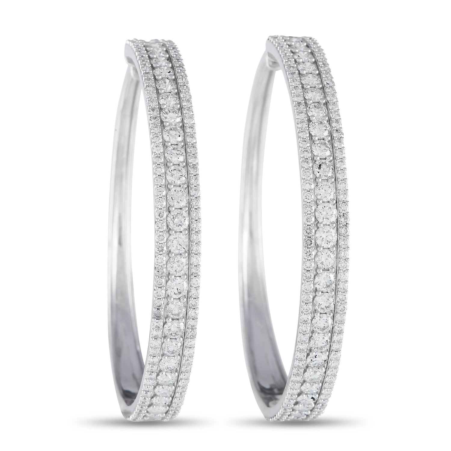 LB Exclusive 14K White Gold 7.0ct Diamond Tapered Hoop Earrings