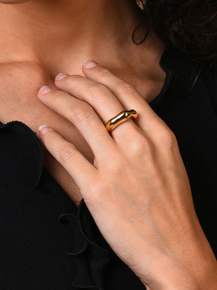 This Gold-plated Designer Finger Ring by SOHI is a fashionable and bold statement piece that adds a unique flair to any outfit. Designed to express individuality, this ring is perfect for matching with various styles, making it an essential addition to your jewelry collection. The gold-plated metal gives it a sleek, high-fashion appeal, while its eye-catching design enhances the overall look of any attire. This ring is a perfect choice for anyone seeking to elevate their style.