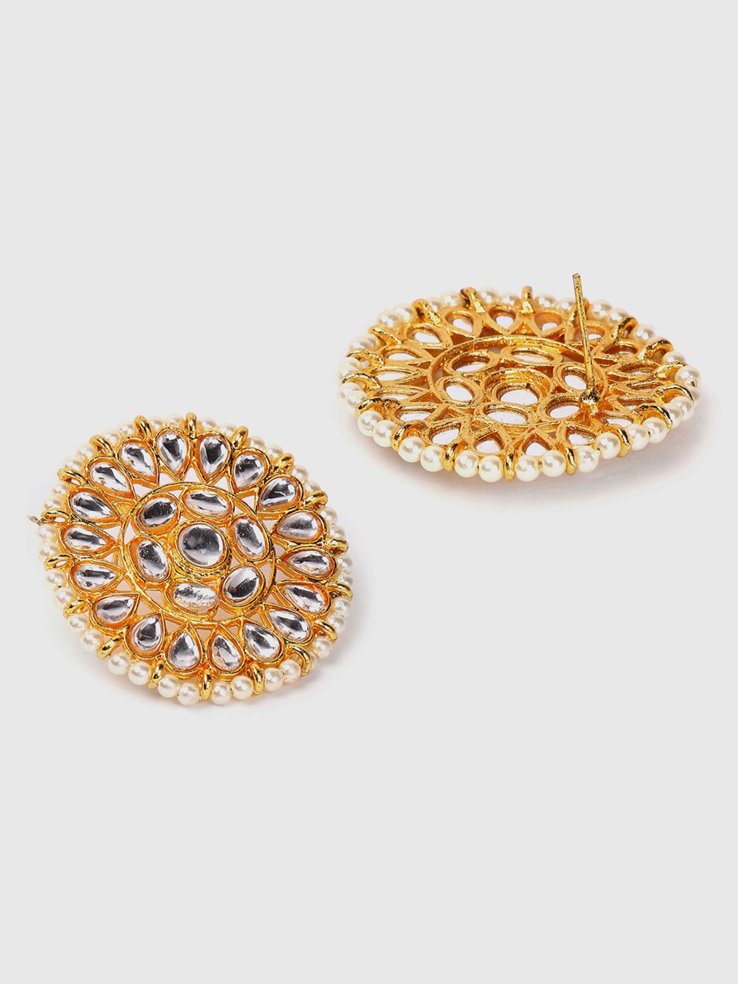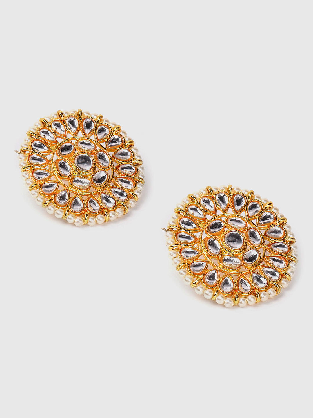 These Gold Plated Kundan Studs by SOHI are a beautiful and elegant choice for any occasion. The intricate design features Kundan stones set in gold plating, creating a vintage-inspired yet contemporary look. Perfect for adding a touch of sophistication and color to any outfit, these studs are easy to style and comfortable to wear, making them a great addition to any jewelry collection.