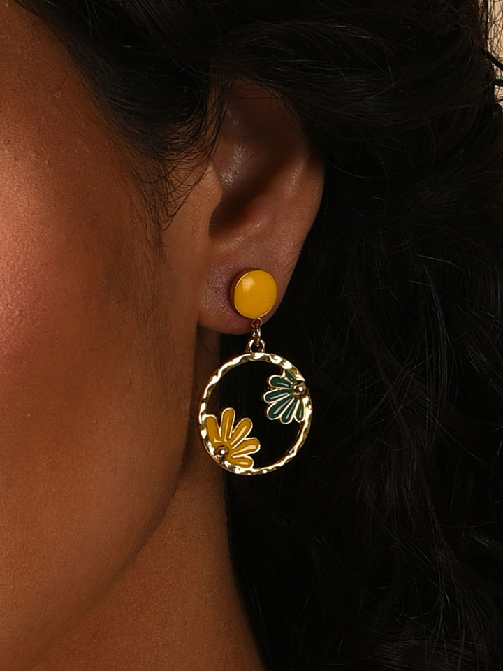 Crafted from metal with multicoloured accents. Comfortable stud design for everyday wear.