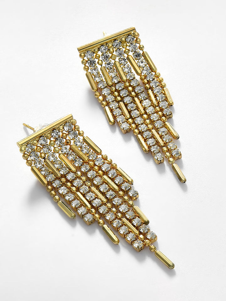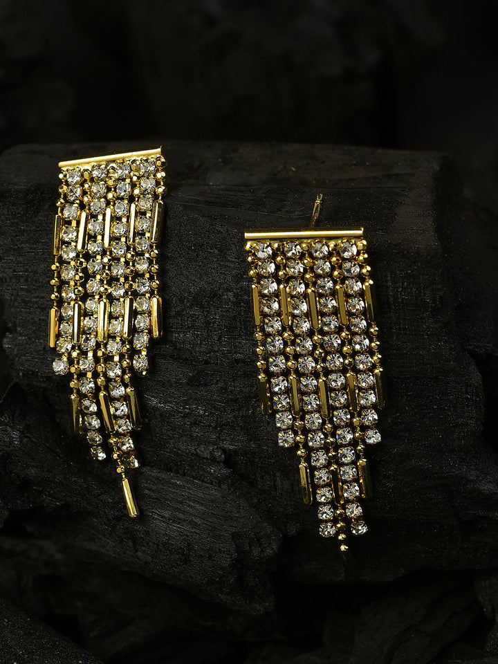 These Gold Plated Stone Drop Earrings by SOHI are the epitome of elegance and sophistication. Their striking drop design combines boldness with delicate charm, making them a versatile addition to your jewelry collection. Perfect for any occasion, whether you're dressing up for a formal event or adding a touch of glamour to an everyday look. The earrings feature a beautiful interplay of gold plating and eye-catching stones, ensuring they stand out while still remaining timeless. These earrings will effortlessly complement any outfit, becoming your go-to accessory for years to come.