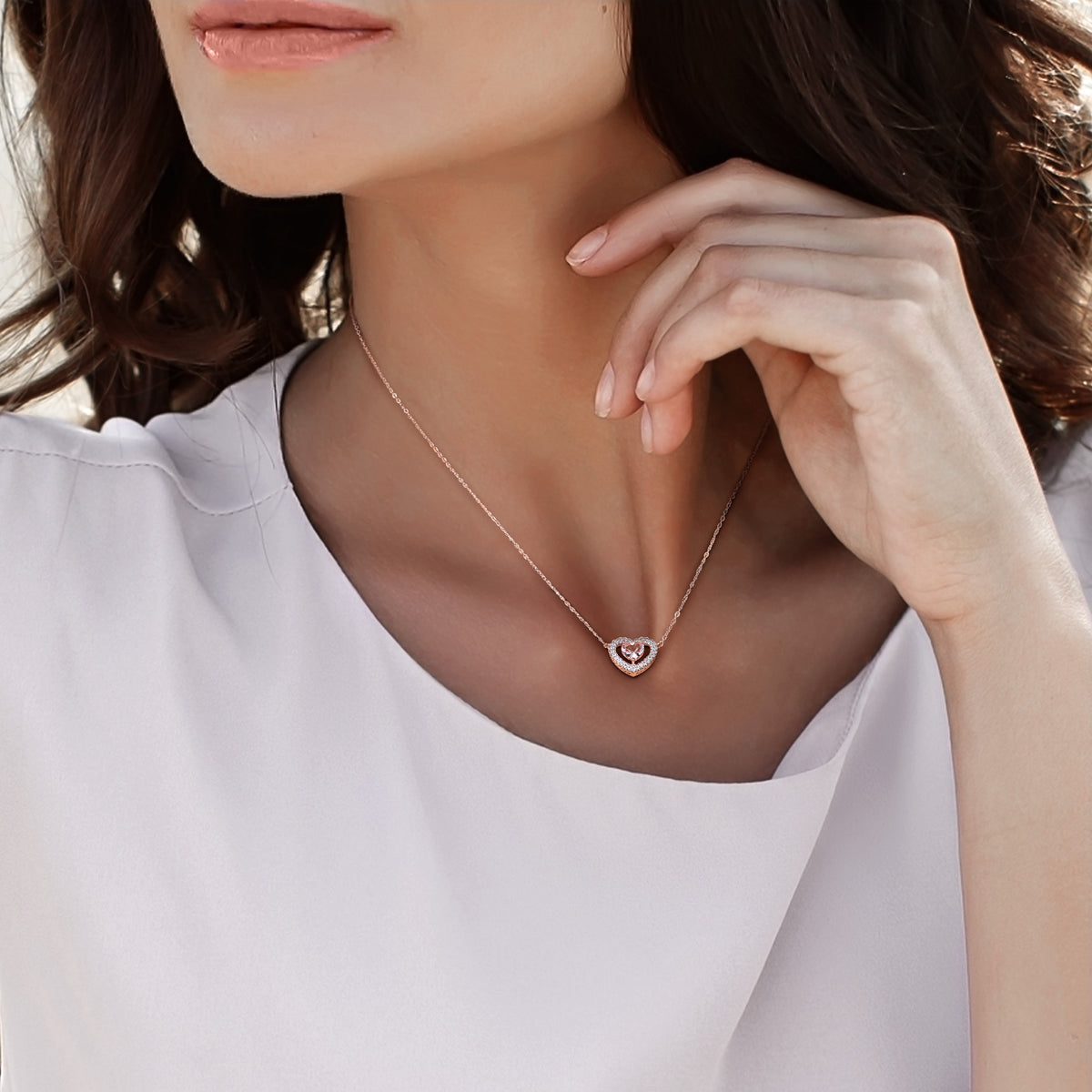 Mimi & Max 1/10ct TGW Cubic Zirconia and Simulated Morganite Heart Necklace in Rose Plated Sterling Silver