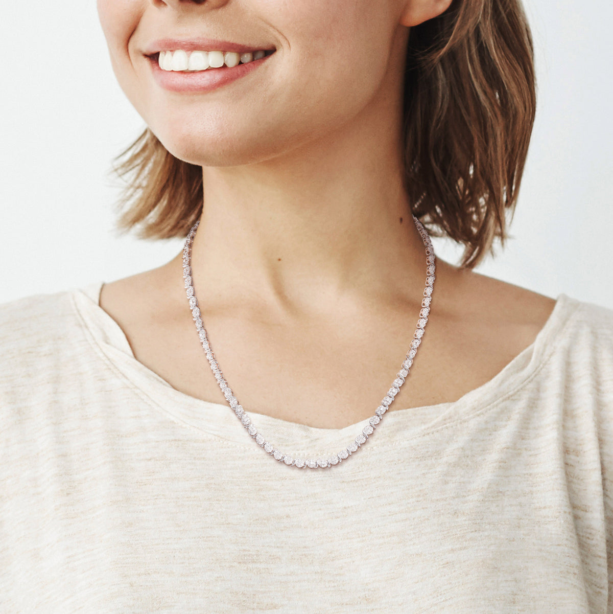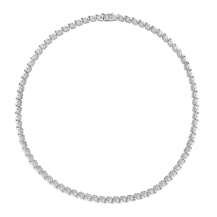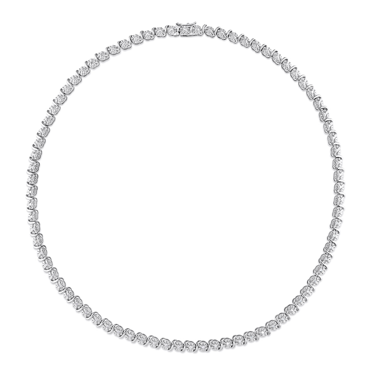 This 1/2ct TDW Diamond Necklace by Mimi & Max is a dazzling display of brilliance and craftsmanship. Featuring 35 sparkling round-cut diamonds meticulously set in sterling silver, this timeless necklace exudes sophistication and radiance. The high-polish finish enhances the light-catching beauty of each stone, making it an effortless choice for everyday elegance or special occasions. A must-have for those who appreciate refined luxury.