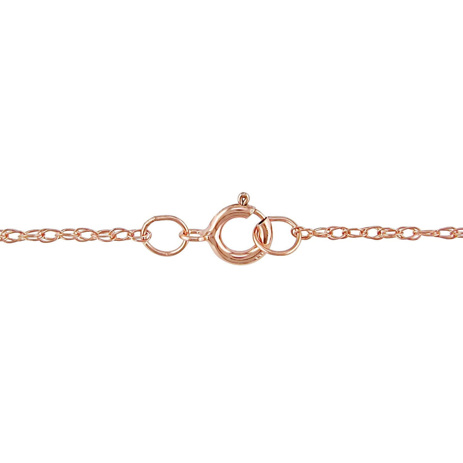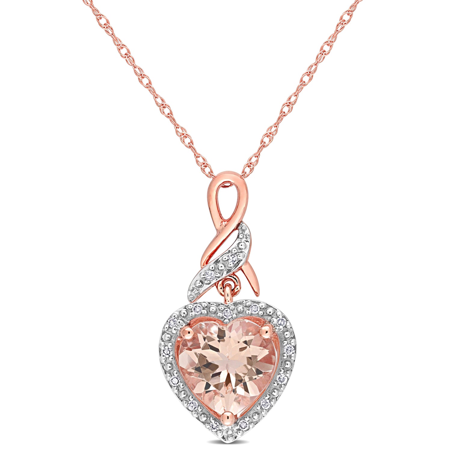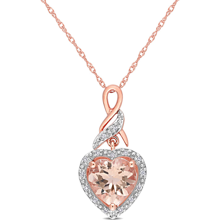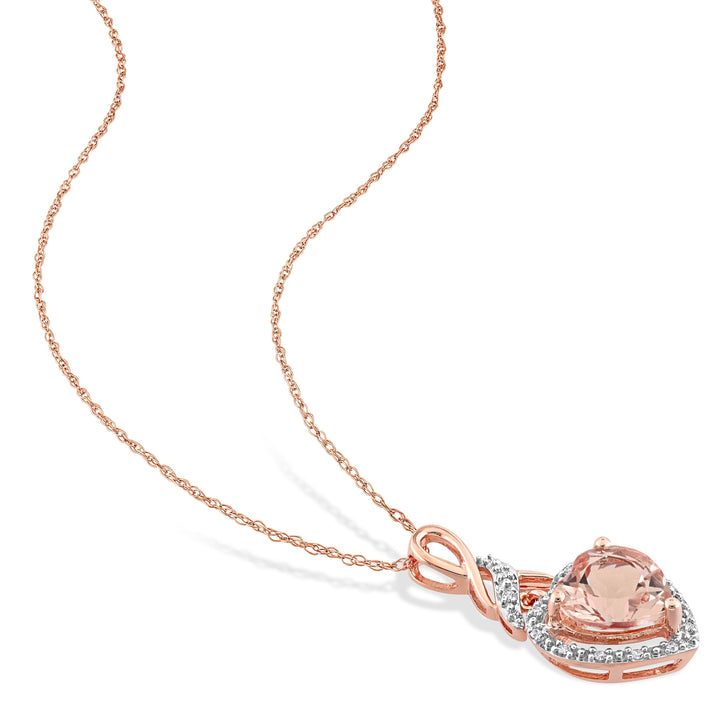 8mm heart-cut morganite (1 stone, 1 3/4ct), 15 round-cut white diamonds (0.06ct). 10k rose gold. Rope chain, spring ring clasp.