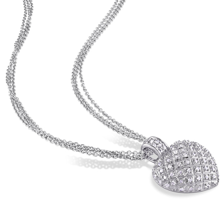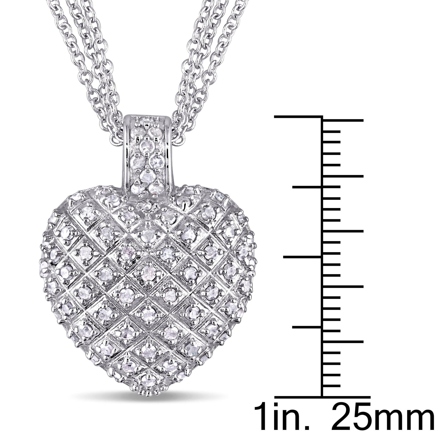 Mimi & Max 1ct TDW Diamond Heart Pendant with Triple Chain in Sterling Silver