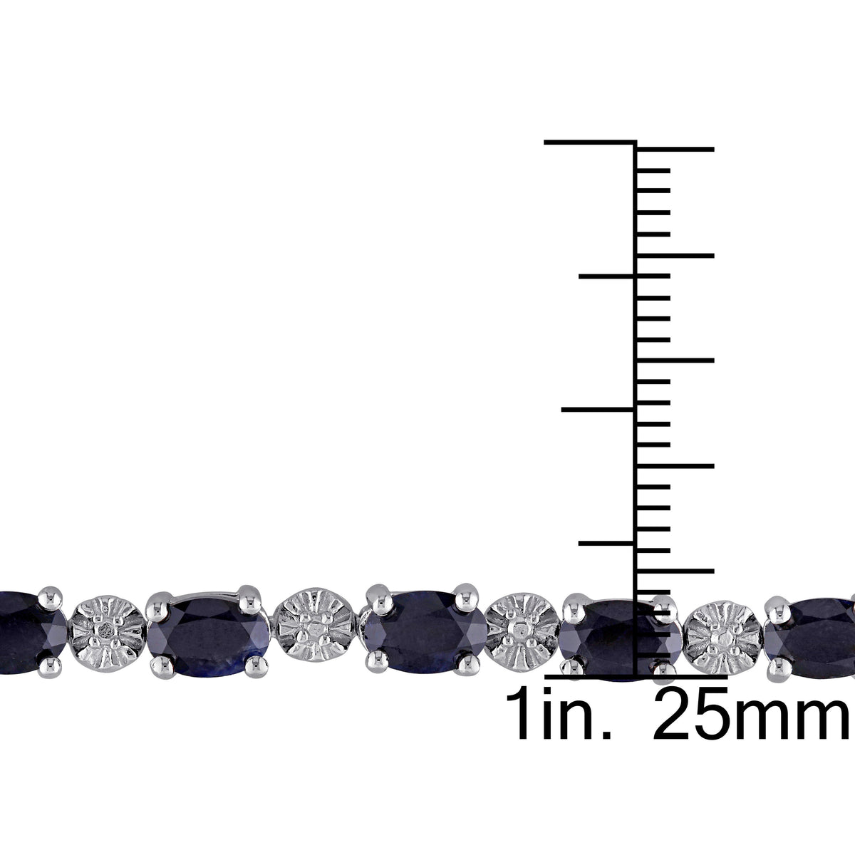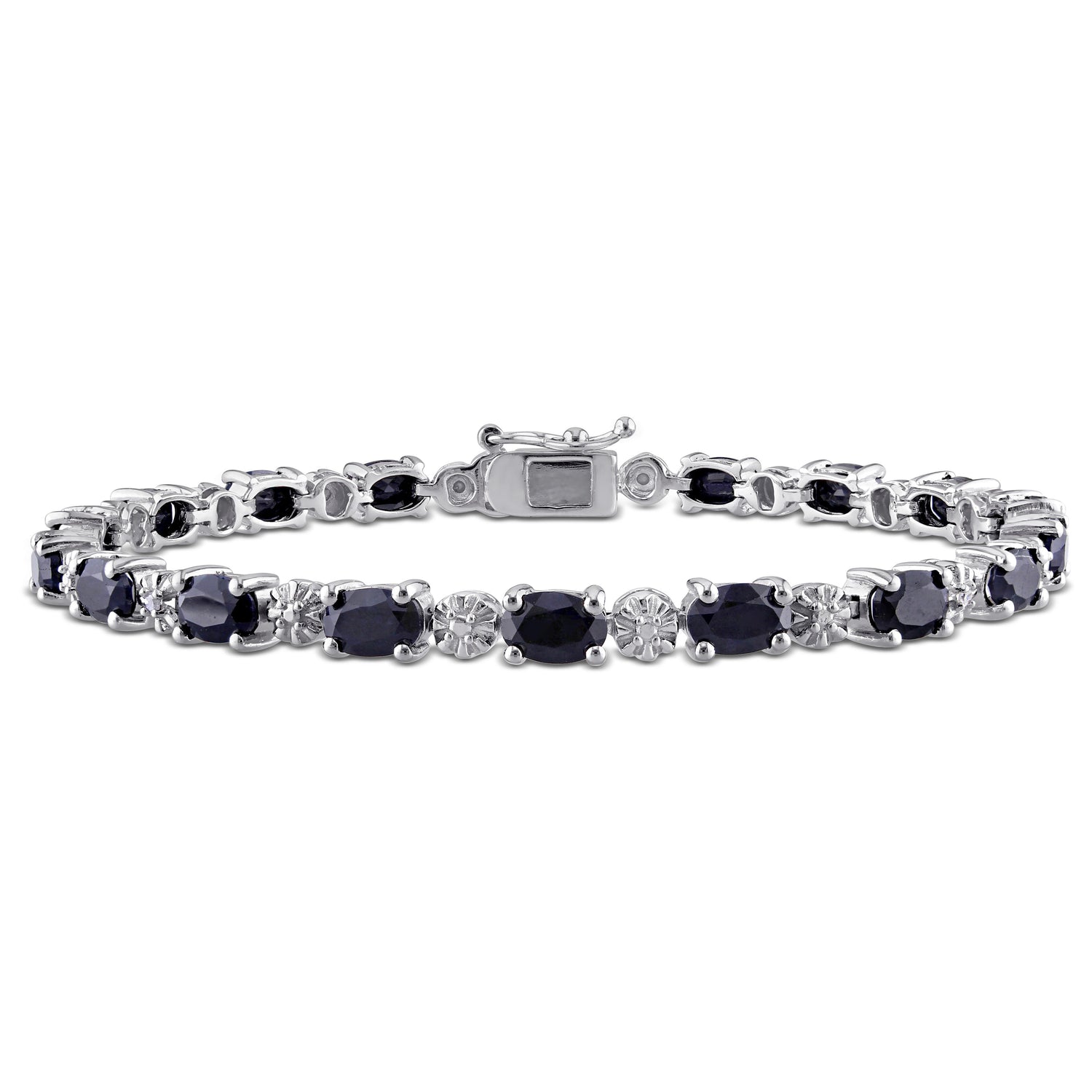 6mm x 4mm oval-cut black sapphires (18 stones, 10 5/8ct), 2 round-cut diamonds (0.02ct). Sterling silver. Pressure clasp with safety catch.