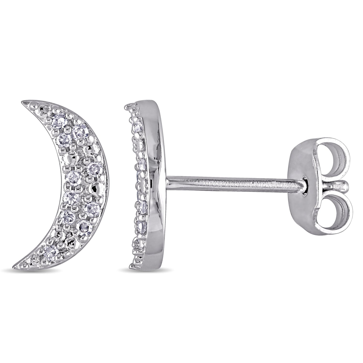 Mimi & Max 1/10ct TDW Diamond Crescent Earrings in Sterling Silver