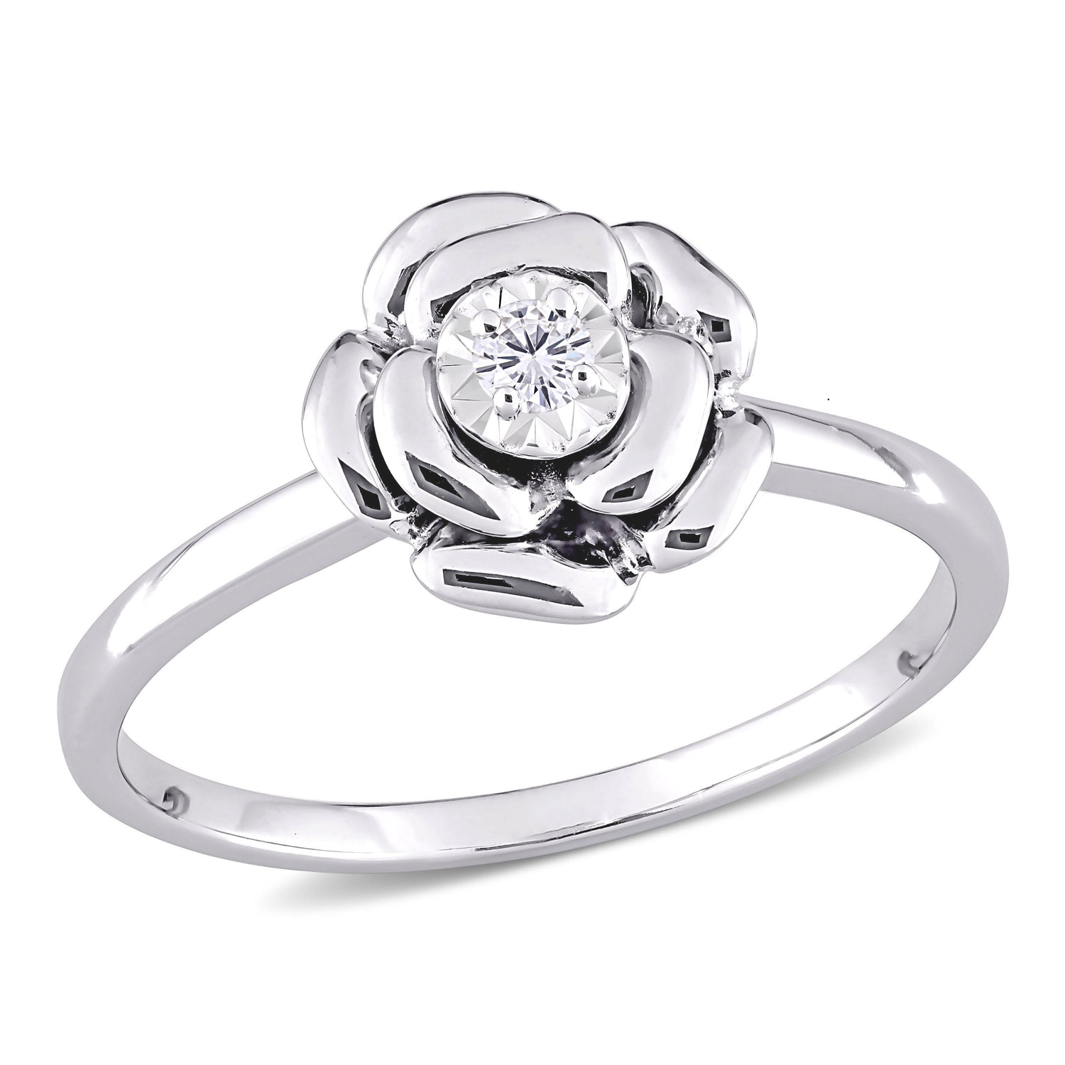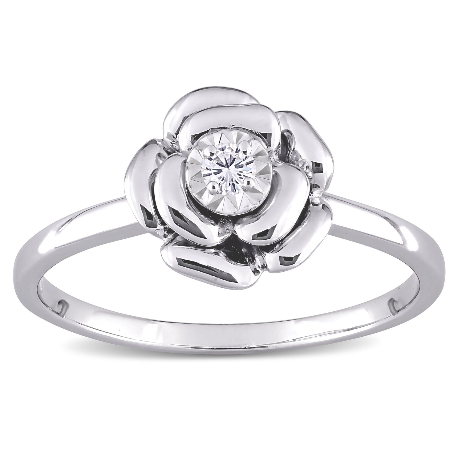 Mimi & Max Diamond Accent Flower Ring in Sterling Silver