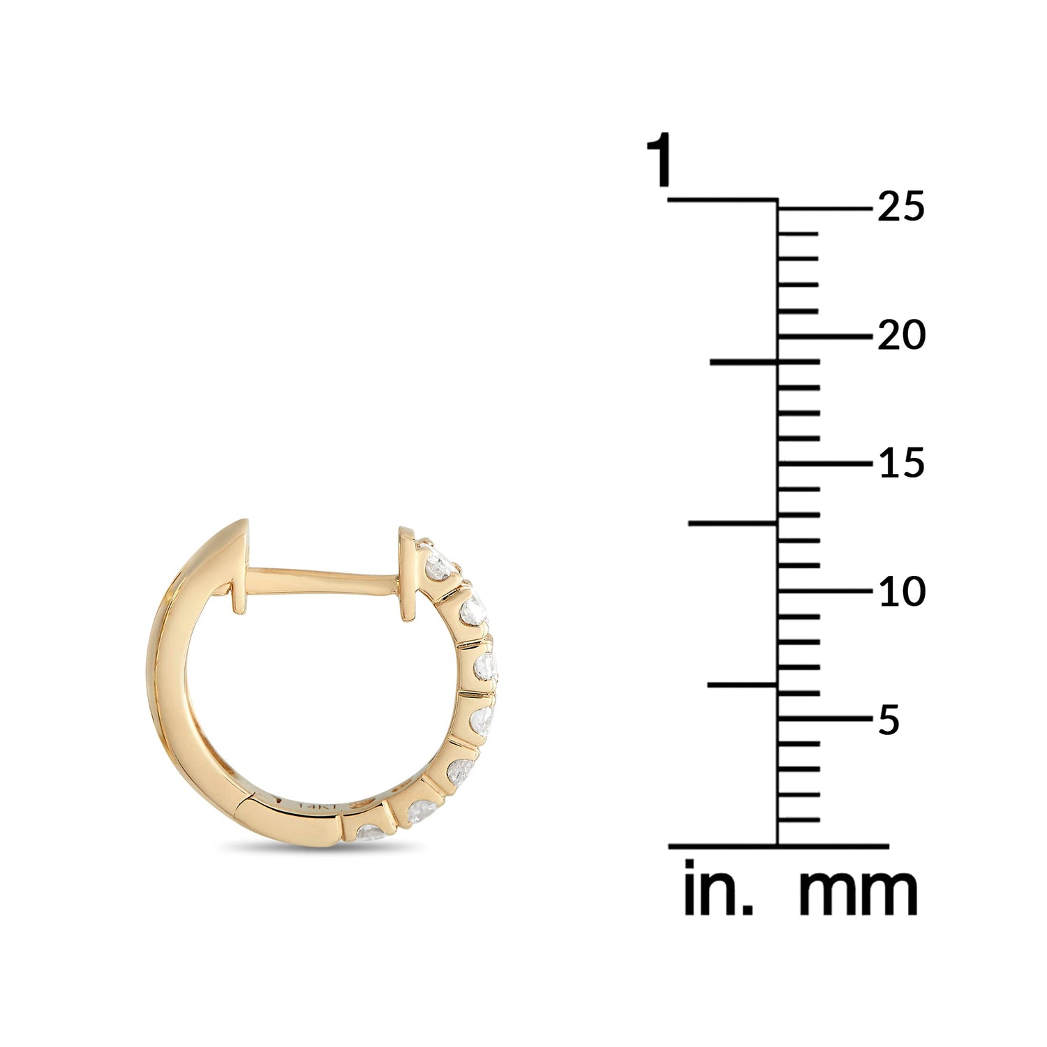 Crafted in 14K yellow gold with 0.59 carats of diamonds. Each hoop measures 0.50 inches round.