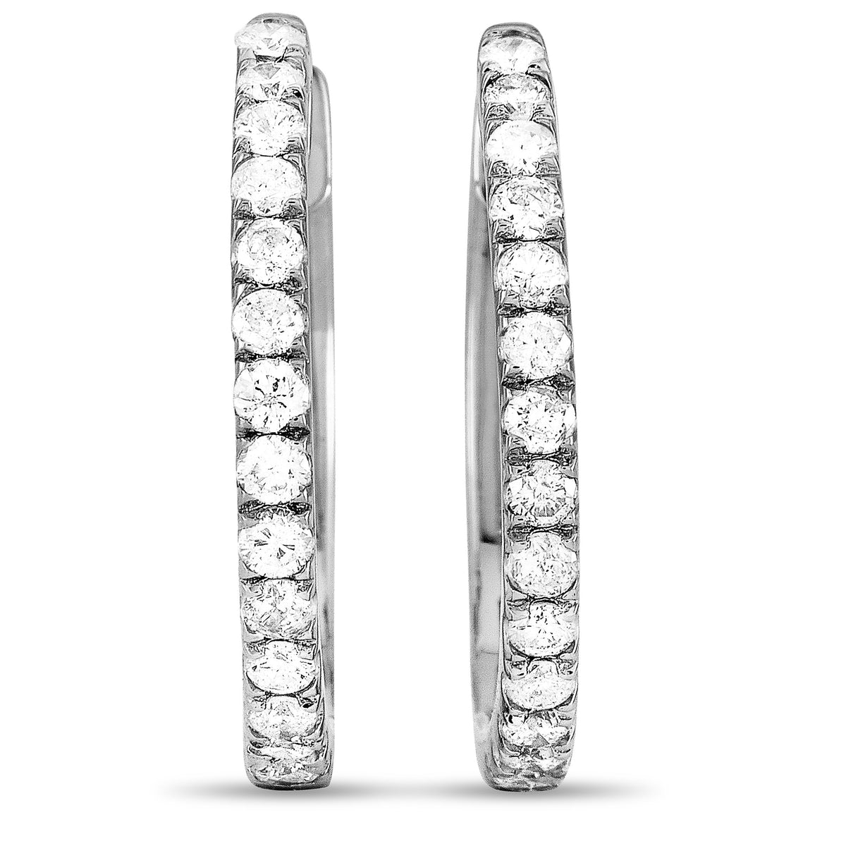 These 0.50ct Diamond Hoop Earrings in 14K White Gold by LB Exclusive are a sophisticated addition to any jewelry collection. Set with 0.50 carats of diamonds, these hoop earrings boast a classic design that will never go out of style. The 0.75-inch size makes them ideal for everyday wear or special occasions, and the 14K white gold setting ensures lasting durability.