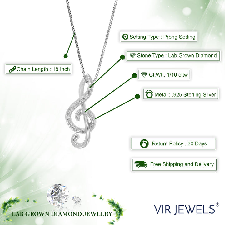 1/10 cttw Lab Grown Diamond Music Pendant Necklace .925 Sterling Silver With 18 Inch Chain