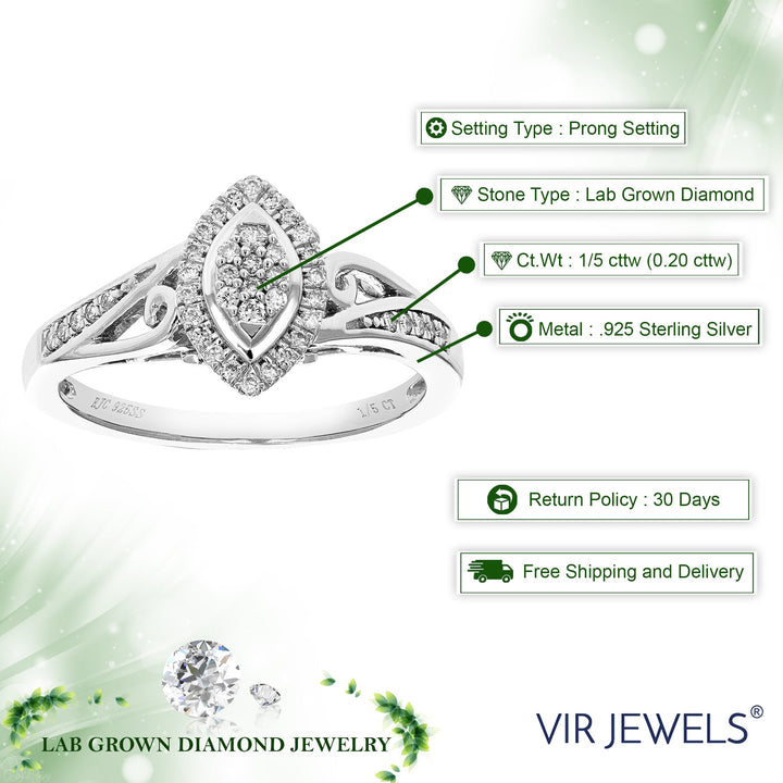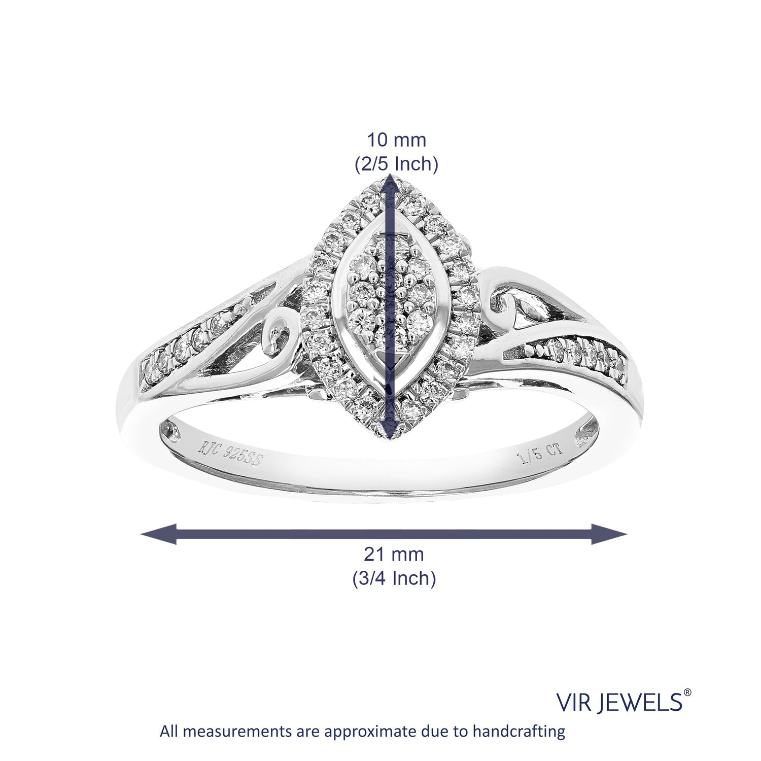 This 1/5 cttw Round Cut Lab Grown Diamond Wedding Engagement Ring by Vir Jewels combines elegance and modern craftsmanship. With 42 round-cut diamonds set in durable .925 sterling silver, this engagement ring offers a timeless design that radiates brilliance. The prong setting ensures that the diamonds are visible and well-supported, highlighting their sparkle and clarity. Ideal for those seeking a classic yet chic engagement ring, this piece is designed to complement any style. The understated charm of this 1/5 cttw engagement ring is perfect for everyday elegance or for marking a significant moment.