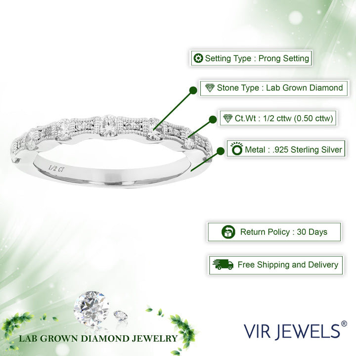 1/2 cttw Round Cut Lab Grown Diamond Wedding Band 19 Stones .925 Sterling Silver Prong Set
