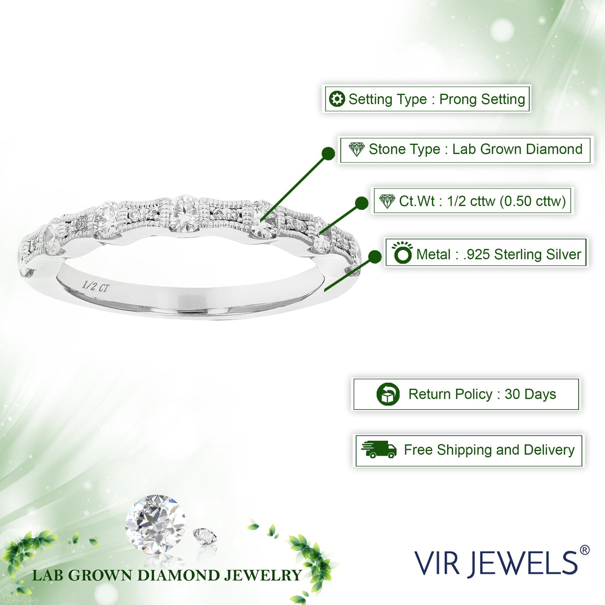 Handcrafted in .925 sterling silver with 1/2 cttw of round lab-grown diamonds (H-I color, SI1-SI2 clarity). Setting: Prong. Width: 2mm.