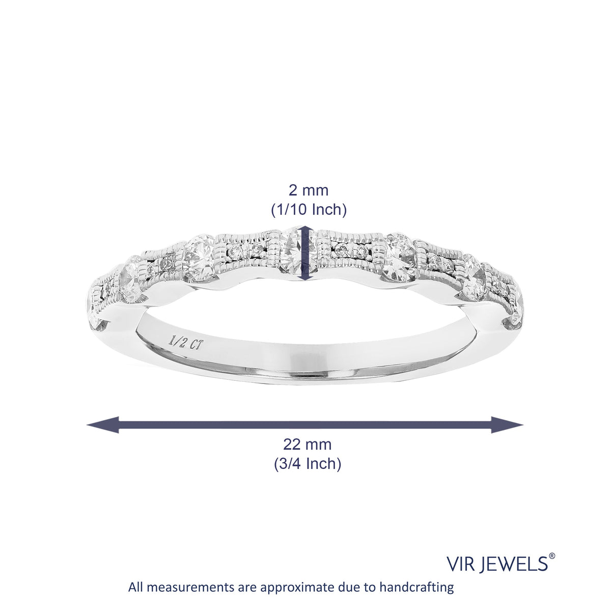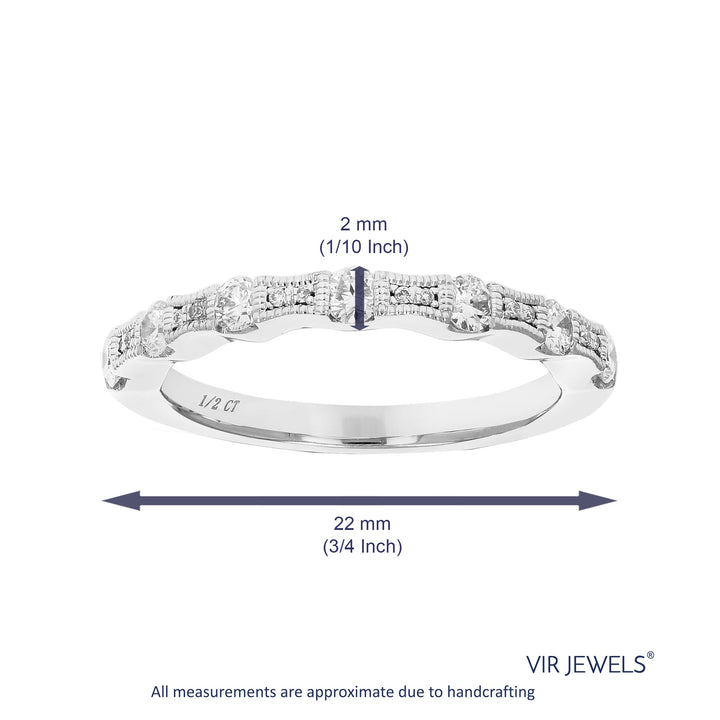 This 1/2 cttw Round Cut Lab Grown Diamond Wedding Band by Vir Jewels is designed to complement any engagement ring with its understated elegance. Featuring 19 round lab-grown diamonds, each set in a prong setting, the band is made of .925 sterling silver. At a width of 2mm, this wedding band is perfect for those seeking a delicate yet sparkling band. A perfect symbol of lasting love.