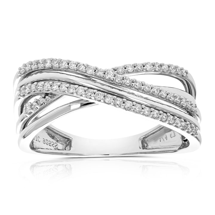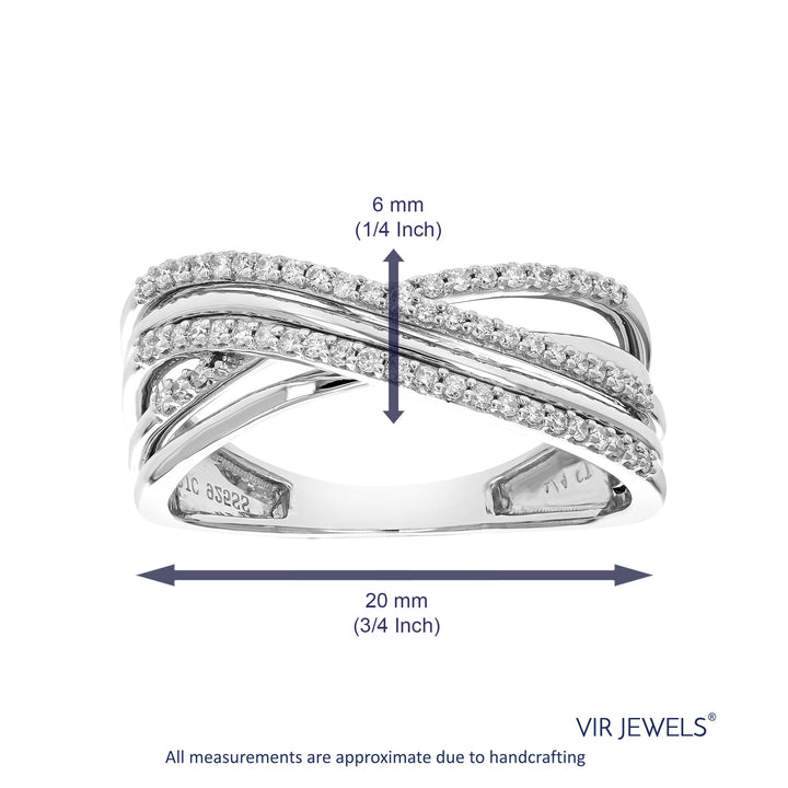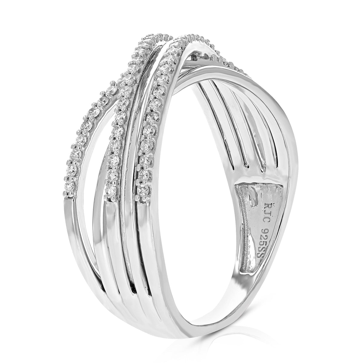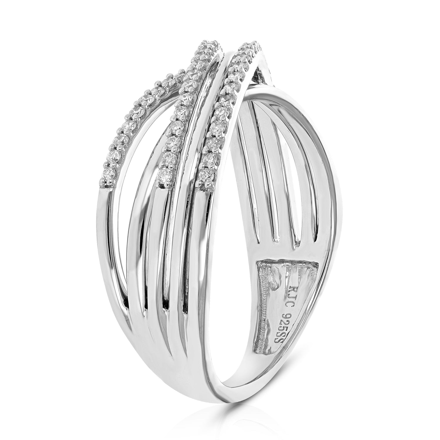 Handcrafted in .925 sterling silver with 59 round lab-grown diamonds (1/4 cttw). Diamond clarity: SI1-SI2, color: H-I. Prong setting. Ring width: 6 MM (1/4 Inch).