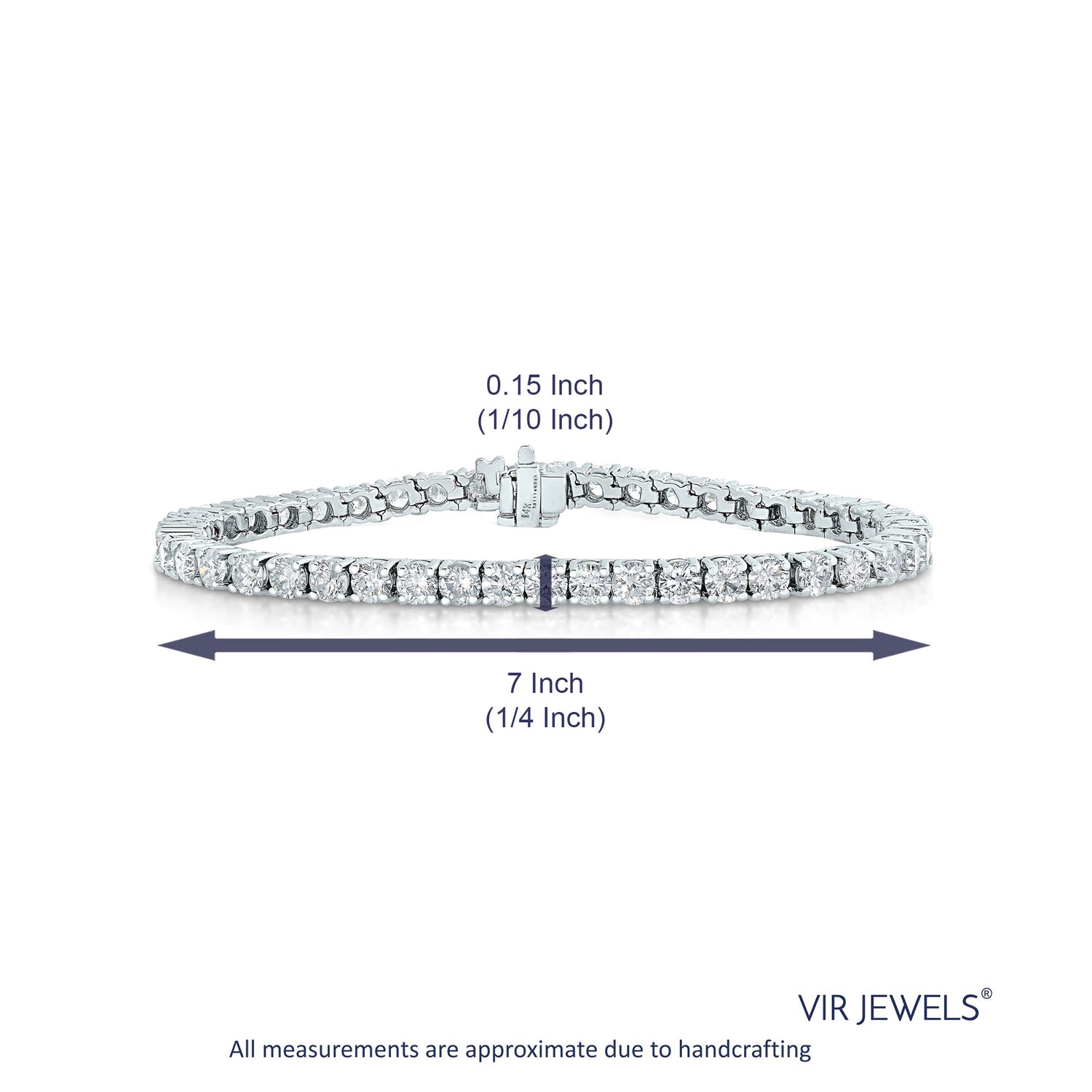 This 2 cttw Lab Grown Diamond Tennis Bracelet in 14K White Gold by Vir Jewels offers a stunning display of lab-grown diamonds set in a prong setting. With 71 dazzling round diamonds, this bracelet sparkles with every movement, making it a perfect piece for both formal and casual wear. The bracelet, secured with a box and tongue safety clasp, is an elegant and timeless addition to any jewelry collection.