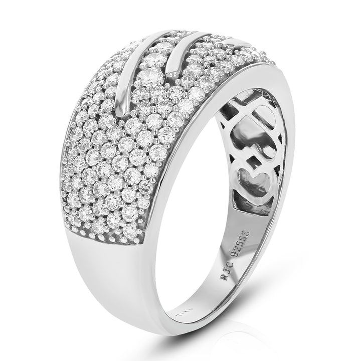 Crafted in .925 sterling silver with 109 round-cut lab-grown diamonds. Total carat weight: 7/8 cttw. Diamond color: H-I, clarity: SI1-SI2. Width: 9 mm.
