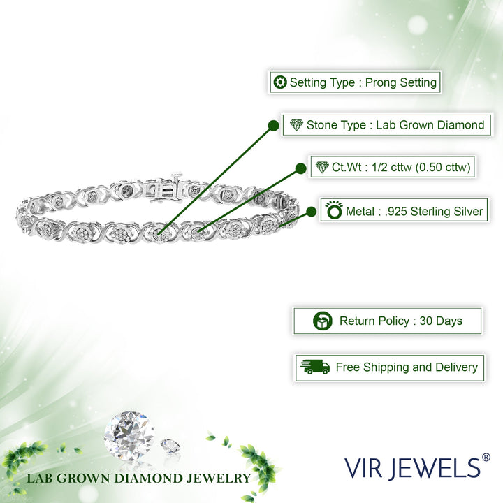 1/2 cttw Round Lab Grown Diamond Tennis Bracelet .925 Sterling Silver Prong Set