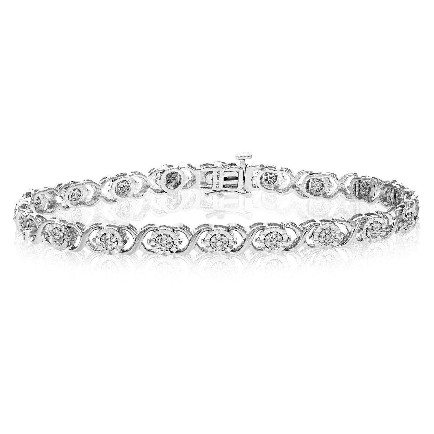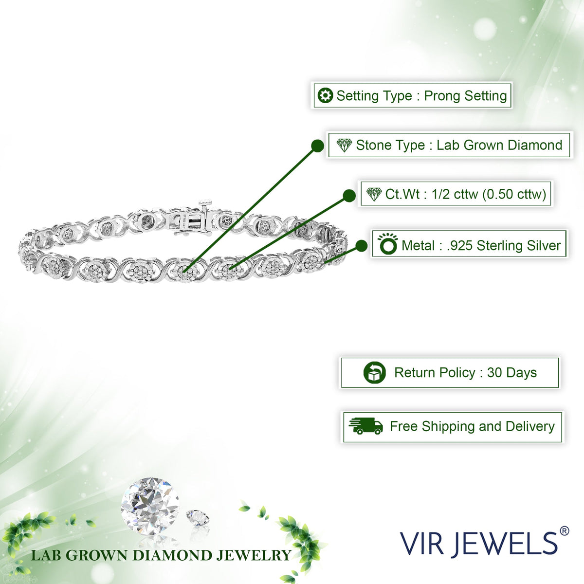 Handcrafted in .925 sterling silver with 133 round-cut lab-grown diamonds, totaling 1/2 cttw. Diamond color H-I, clarity SI1-SI2. Prong setting for secure and brilliant diamond display. Bracelet width: 5mm (1/5 inch); length: 7 inches.