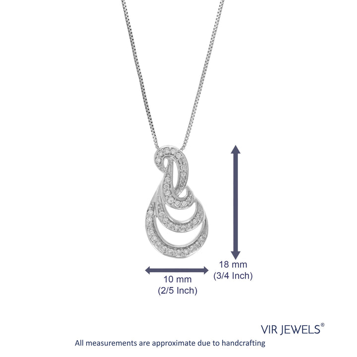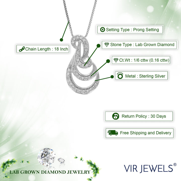 1/6 cttw Lab Grown Round Diamond Swirl Pendant Necklace .925 Sterling Silver 2/5 Inch With 18 Inch Chain