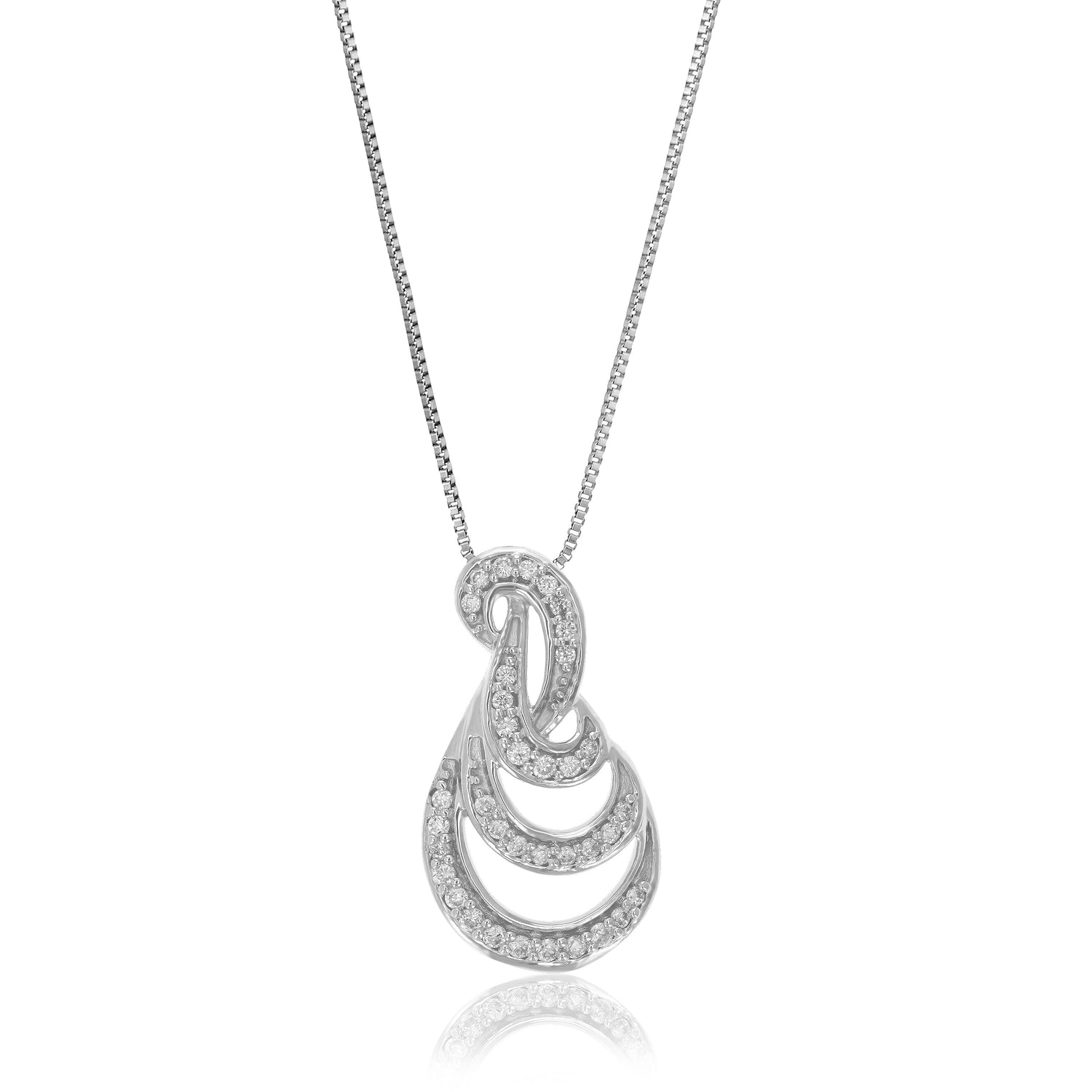 This 1/6 cttw Lab Grown Round Diamond Swirl Pendant Necklace by Vir Jewels captures movement and elegance with its fluid swirl design. Adorned with 36 radiant lab-grown diamonds, this pendant sparkles with brilliance. The sterling silver setting enhances the diamonds' glow, while the 18-inch chain ensures a perfect fit. A modern yet timeless piece, this pendant adds a touch of sophistication to any outfit.
