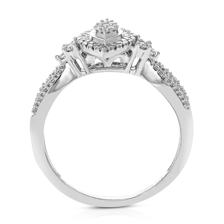 This Round Lab Grown Diamond Engagement Ring by Vir Jewels radiates charm and sophistication with 55 dazzling diamonds. The carefully arranged stones in a prong setting allow maximum light reflection, creating an eye-catching sparkle. Designed with a sleek sterling silver band, this ring is the perfect embodiment of modern elegance and timeless beauty.