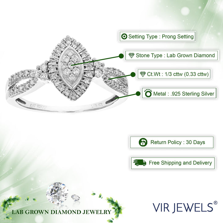 1/3 cttw Round Cut Lab Grown Diamond Engagement Ring .925 Sterling Silver Prong Set
