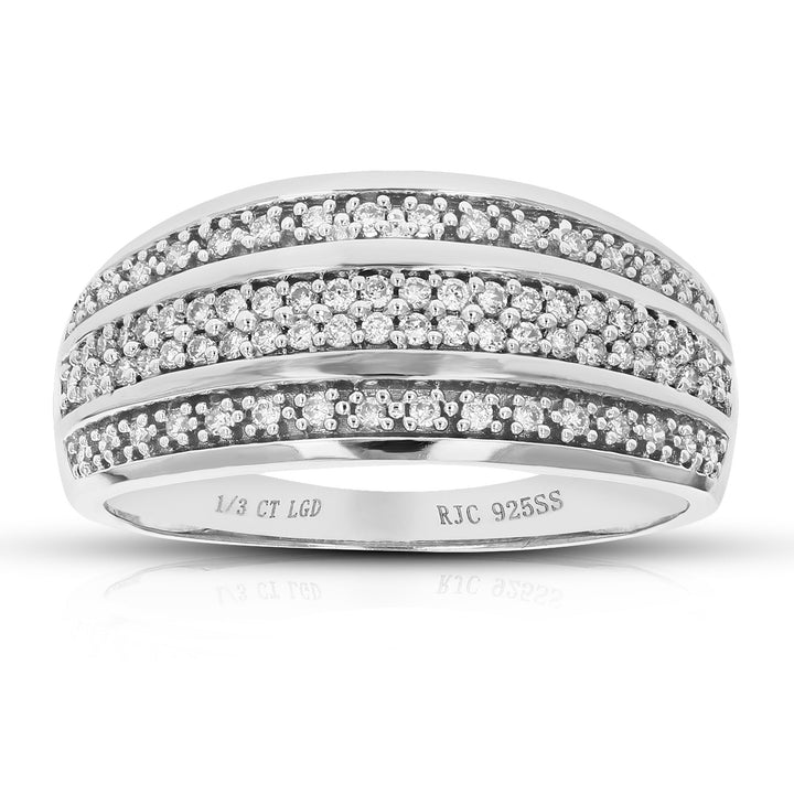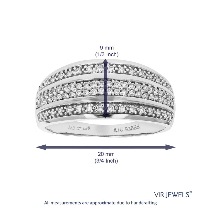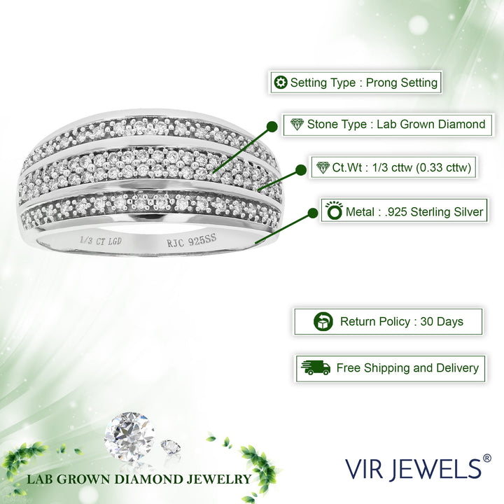 Handcrafted in .925 sterling silver with 1/3 cttw of round lab-grown diamonds (H-I color, SI1-SI2 clarity). Setting: Prong. Width: 9mm.