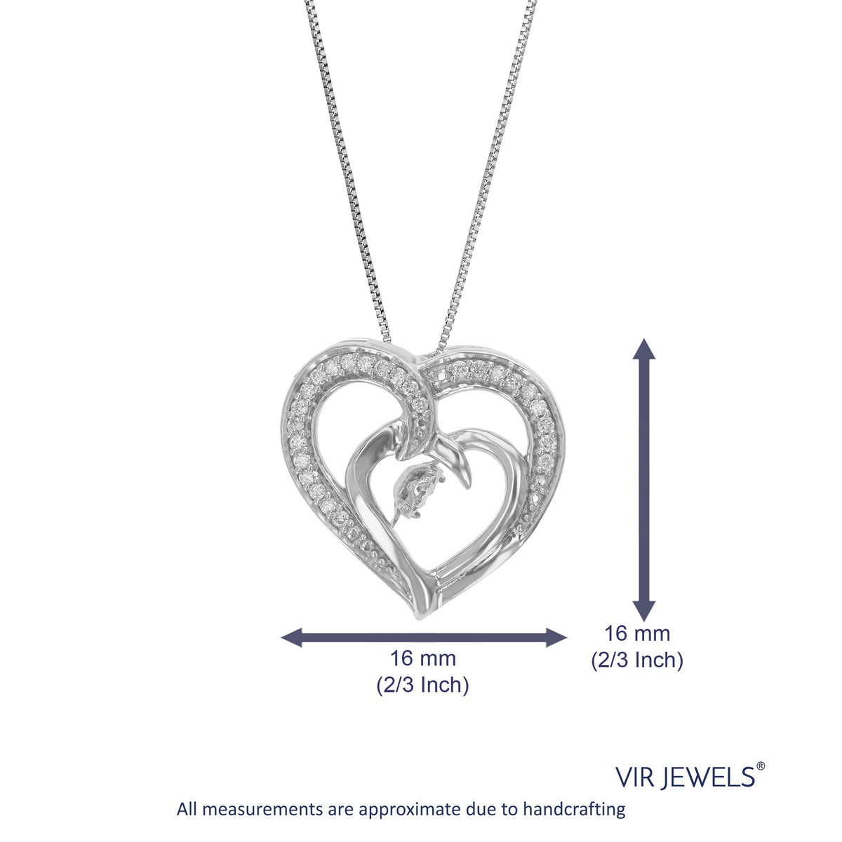 This 1/6 cttw Lab Grown Diamond Double Heart Pendant Necklace by Vir Jewels beautifully symbolizes love and connection. The interlocking heart design, adorned with 27 sparkling lab-grown diamonds, creates a timeless and sentimental look. Suspended from a delicate sterling silver chain, this pendant is a meaningful piece perfect for gifting or everyday wear. The brilliant prong-set diamonds enhance the pendant’s allure, making it a cherished keepsake.