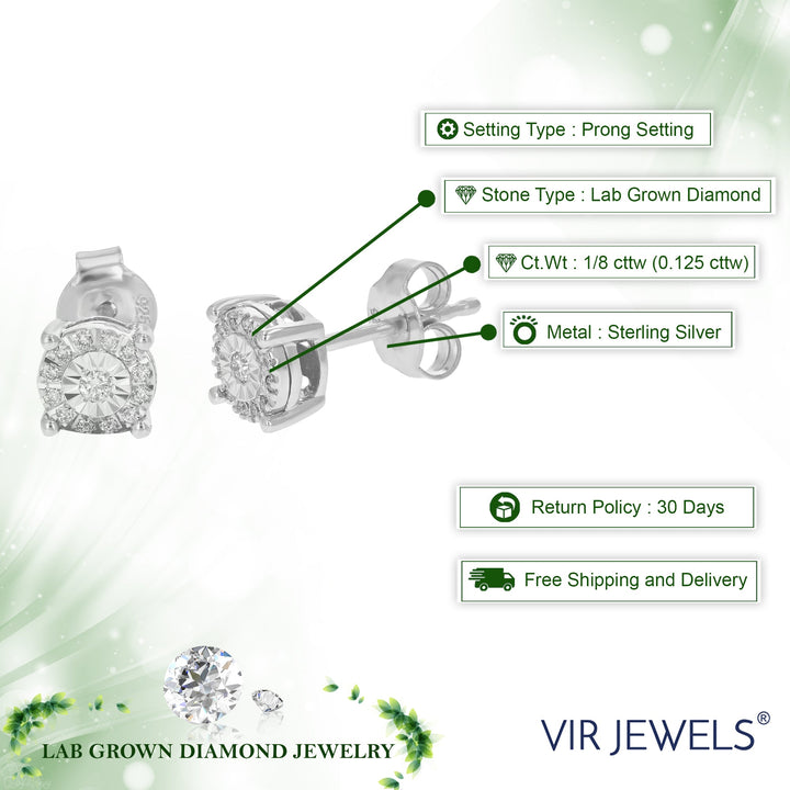 1/8 cttw Round Lab Grown Diamond Stud Earrings .925 Sterling Silver Prong Set For Her