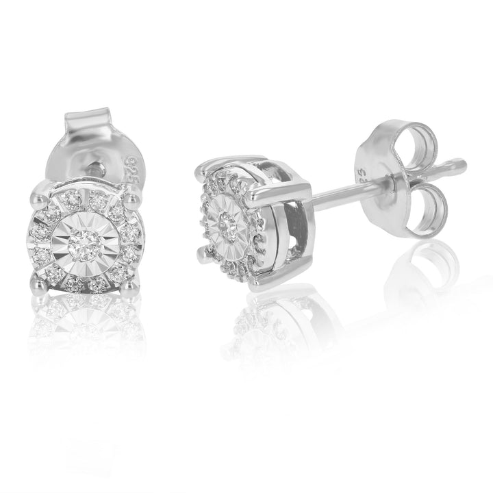 Crafted in .925 sterling silver with 26 round-cut lab-grown diamonds totaling 1/8 cttw. Prong-set for enhanced sparkle. Diamond color: H-I; clarity: SI1-SI2. Stud width: 6mm (1/4 inch), height: 6mm (1/4 inch). April birthstone.