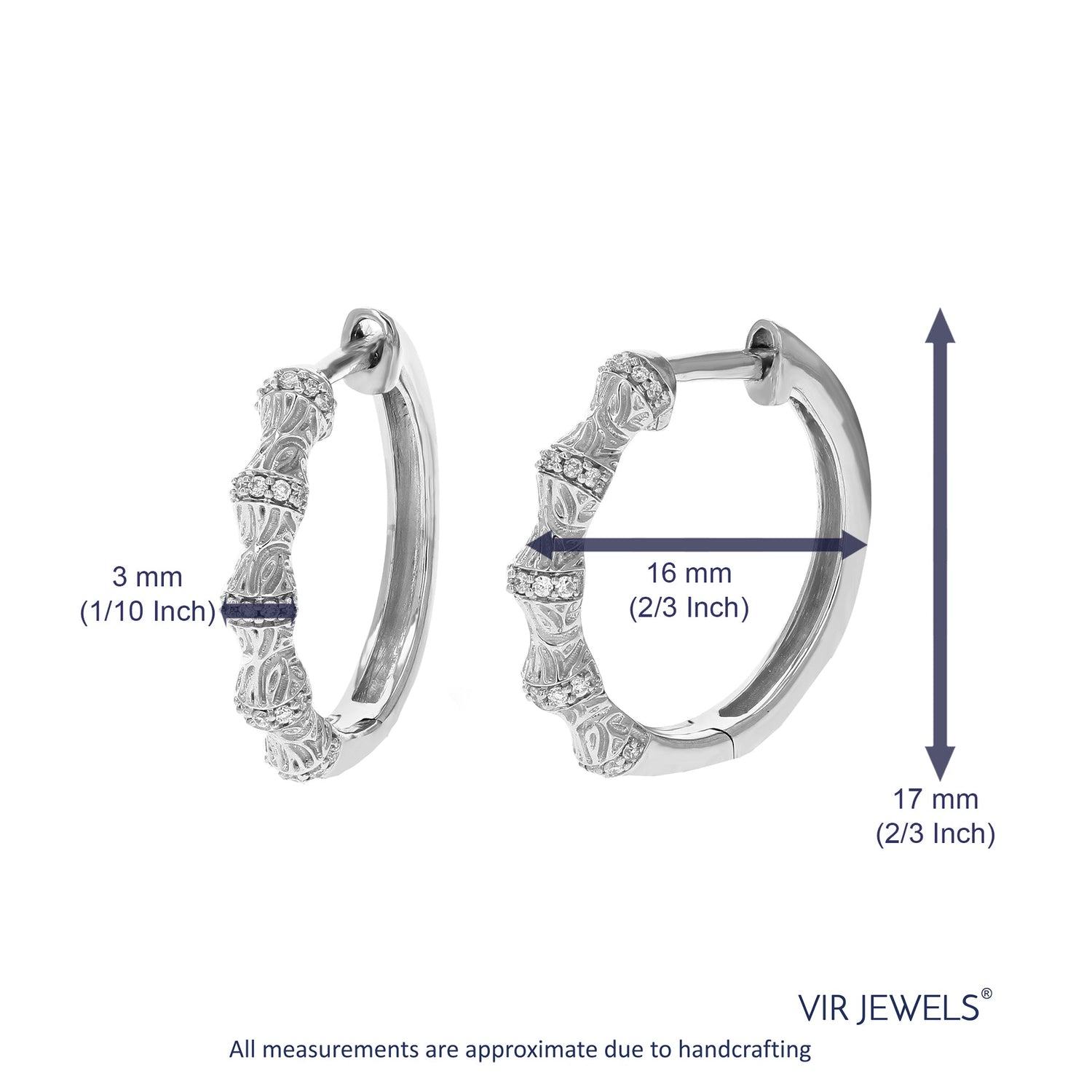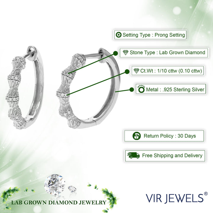 1/10 cttw 50 Stones Round Lab Grown Diamond Hoop Earrings .925 Sterling Silver Prong Set 2/3 Inch